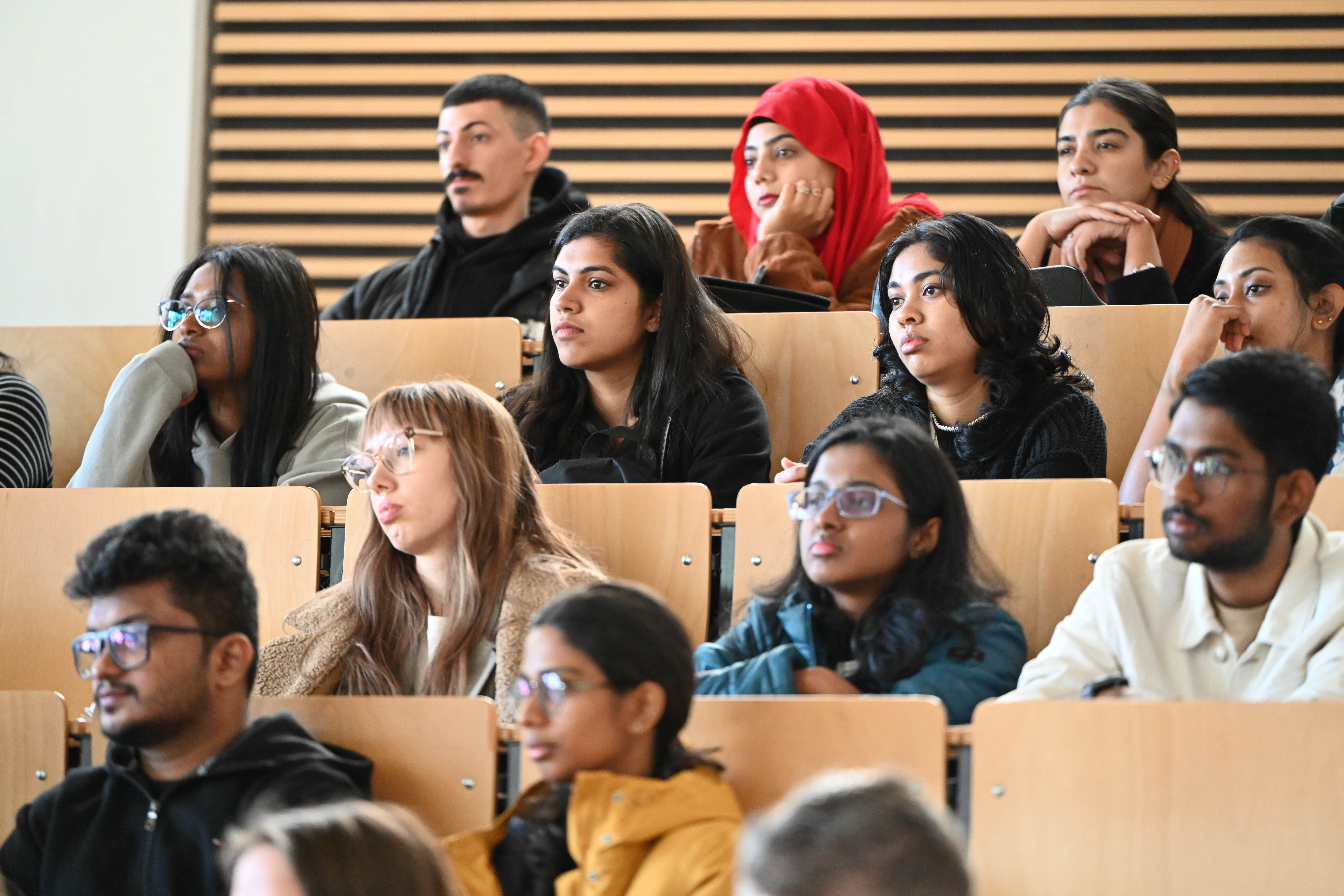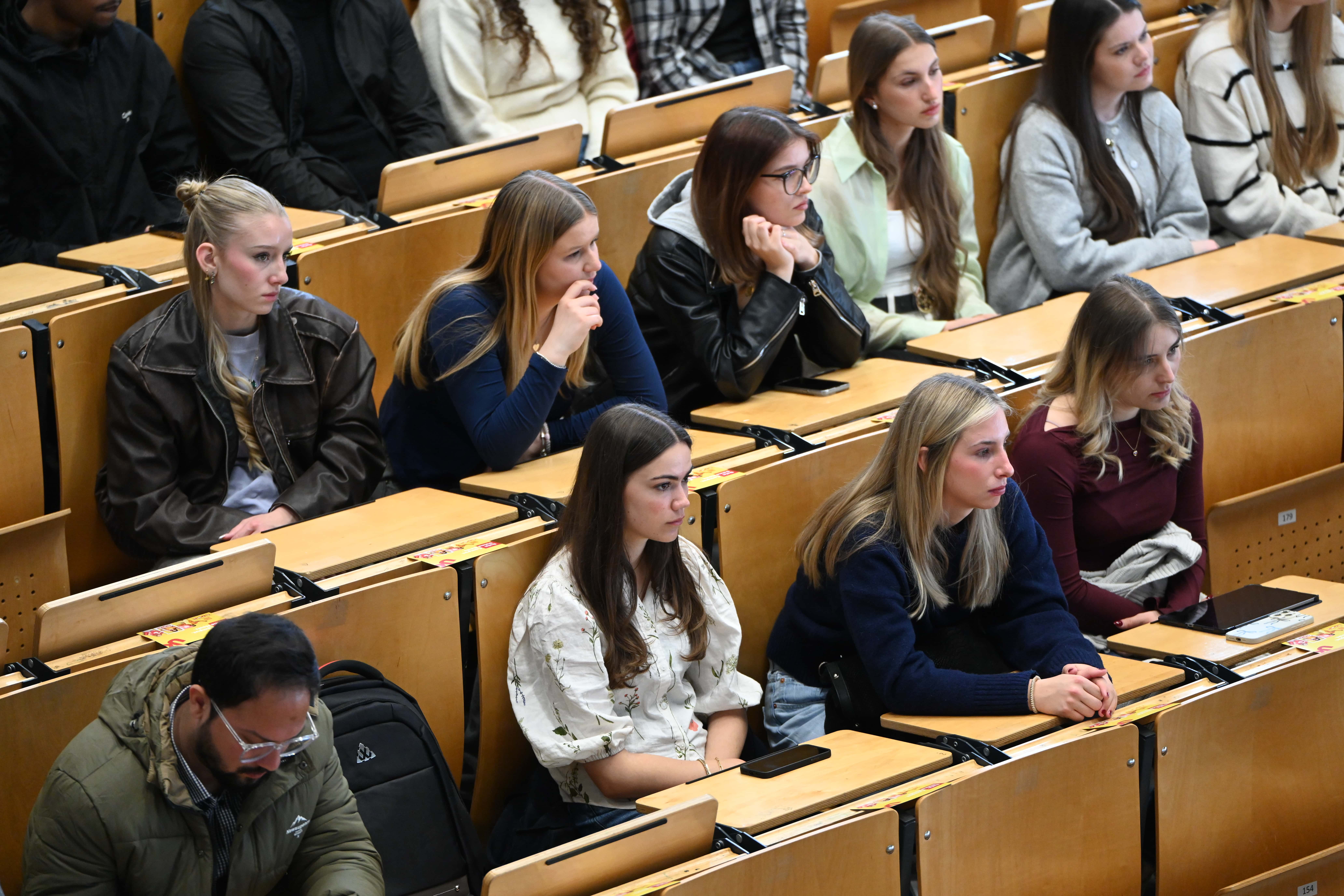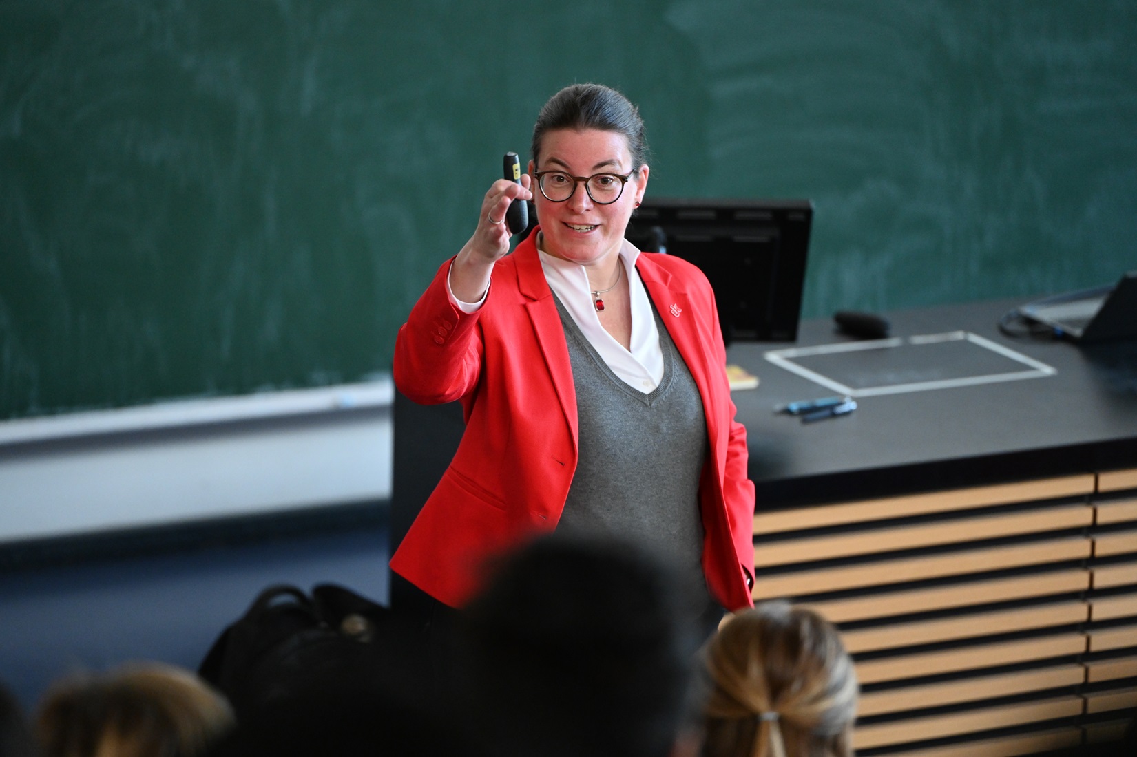 Auch die Vizepräsidentin für Studium und Lehre, Prof. Dr. Constanze Juchem-Grundmann freut sich die neuen Studierenden kennen zu lernen. "Heute ist der erste Tag Ihrer Zukunft. Wir setzen auf moderne Lehrformate, individuelle Betreuung und ein starkes Miteinander – Übernehmen Sie die Verantwortung, gestalten Sie Ihr Studium und gestalten Sie unsere Universität mit!“ begrüßt sie die neue Studierendenkohorte. Sie bedankt sich bei allen Beteiligten, die sich beim Onboarding der neuen Studierenden engagieren und die vielfältigen Angebote in der Erstsemesterwoche und darüber hinaus auf die Beine gestellt haben.