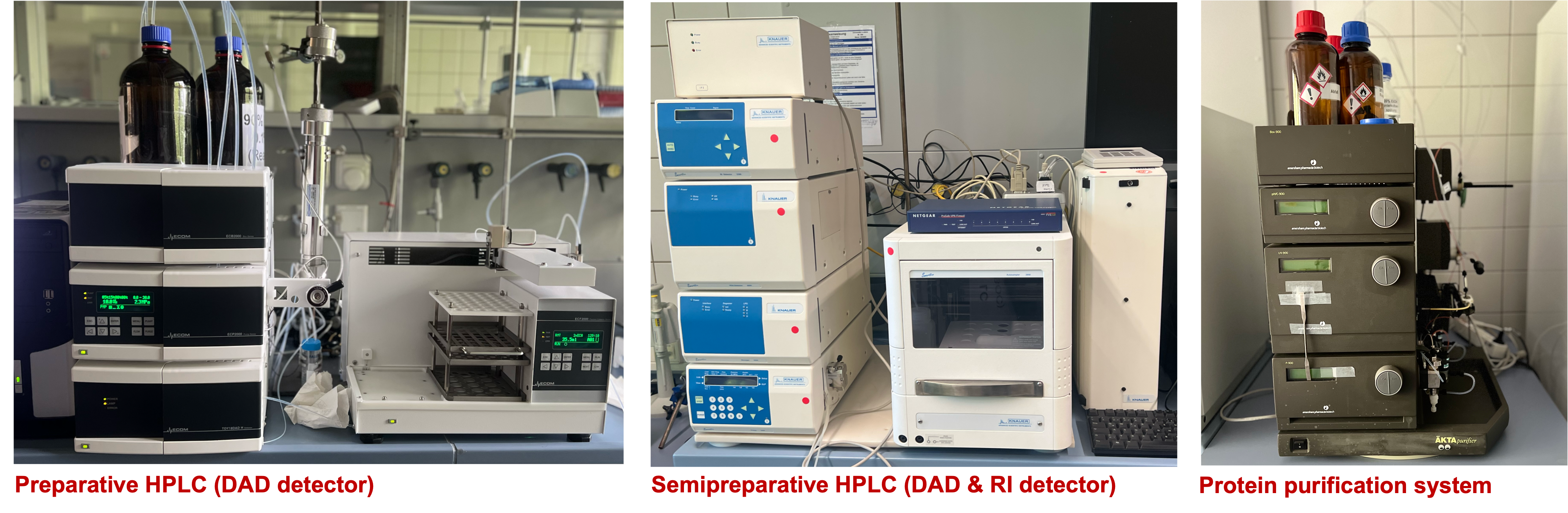 ÄKTA purifier (FPLC, SEC, Amersham/Cytiva): Protein purification system with UV detector. Different SEC columns available.