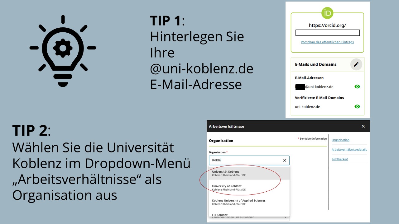 Zusätzlich ist geplant, dass über den sogenannten Affiliation-Manager Ihre Zugehörigkeit zur Universität Koblenz von seiten der Universität bestätigt werden kann. Damit wird Ihr Profil als noch zuverlässiger wahrgenommen.