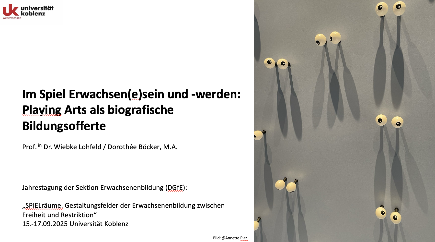 Auf der Tagung an der Universität Koblenz war ich gemeinsam mit Dorothée Böcker mit einem Beitrag beteiligt. Wir haben den Blick vom Spiel der Kinder auf die Prinzipien spielerischer Tätigkeit im Anschluss an Impulse aus dem Alltag gerichtet. Eine Aufmerksamkeitsverschiebung, eine Affizierung, kann dazu beitragen, dass Menschen sich selbsttätig einem Phänomen zuwenden - spielerisch. Das ist in aller Offenheit die damit einhergeht auch für Studierende im Lehramt eine essentielle Erfahrung.