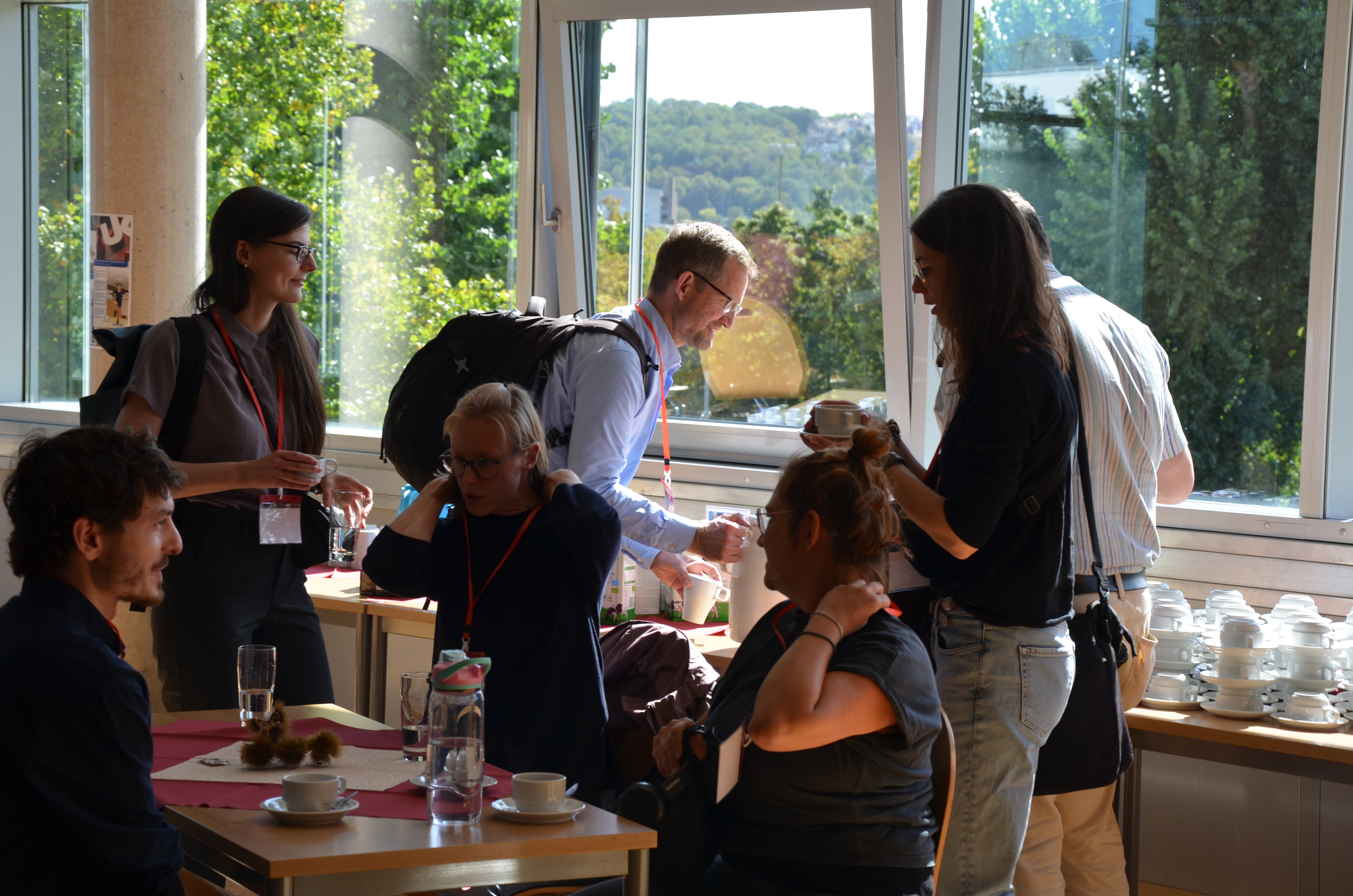 Sollten Sie während der Pausen einen ruhigen Arbeitsplatz suchen, steht Ihnen der Raum 16 eine Etage tiefer offen.