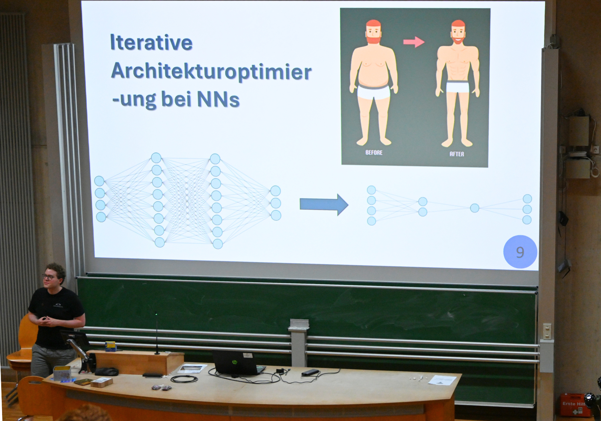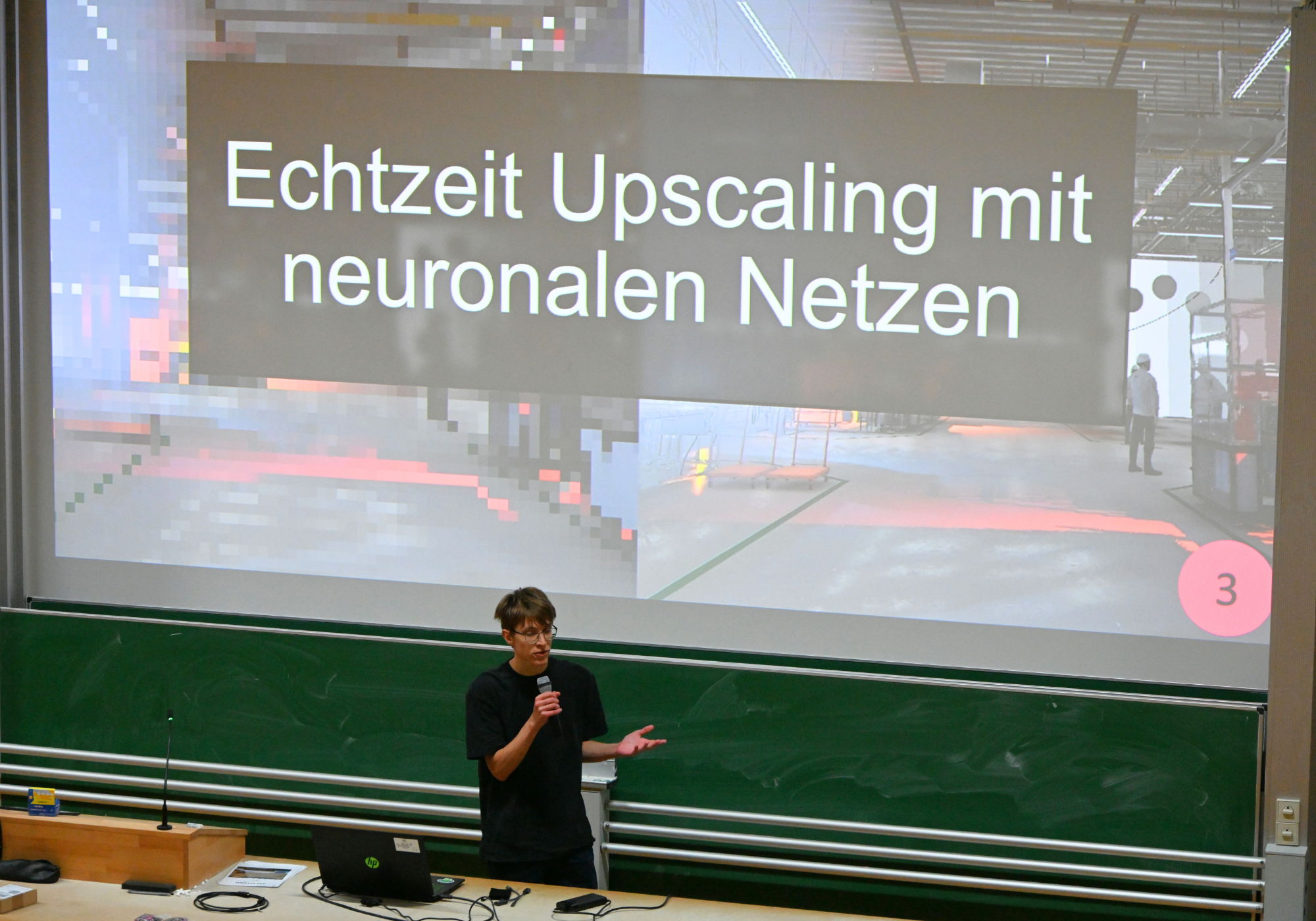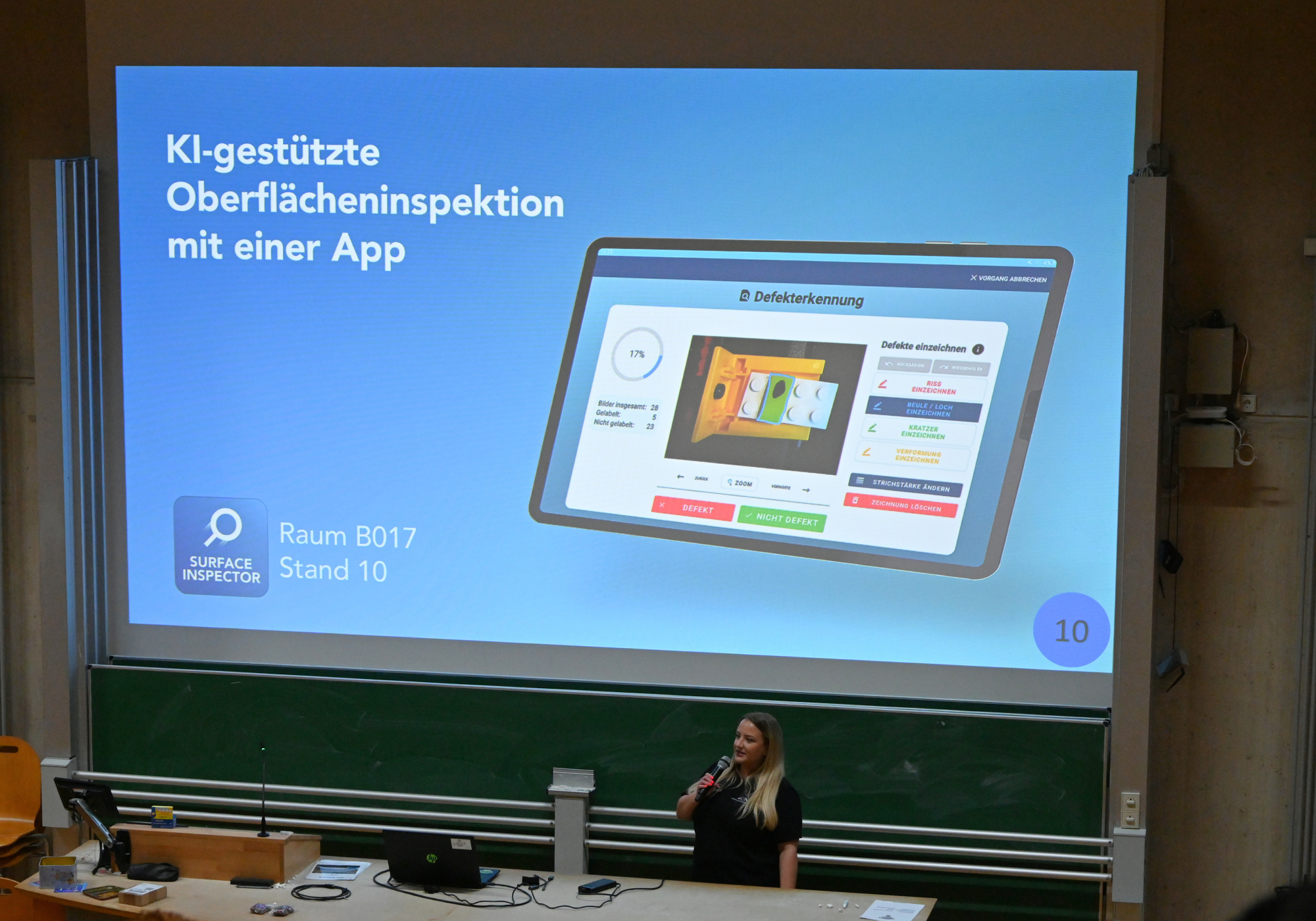 Weiterhin haben über 200 Gäste fleißig abgestimmt und damit den ersten Publikumspreis an „KI-gestützte Oberflächeninspektion mit einer App“ von Teresa Schardt vergeben.