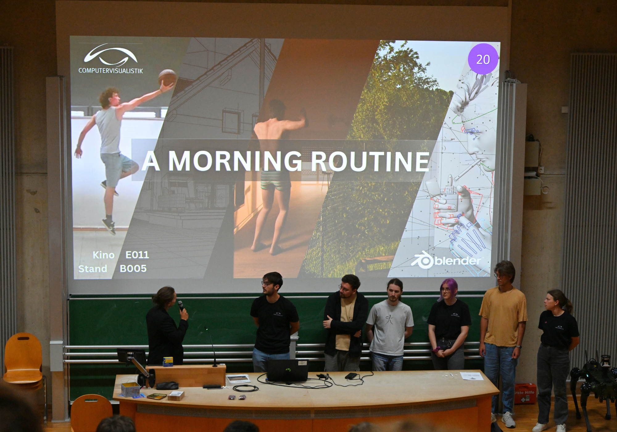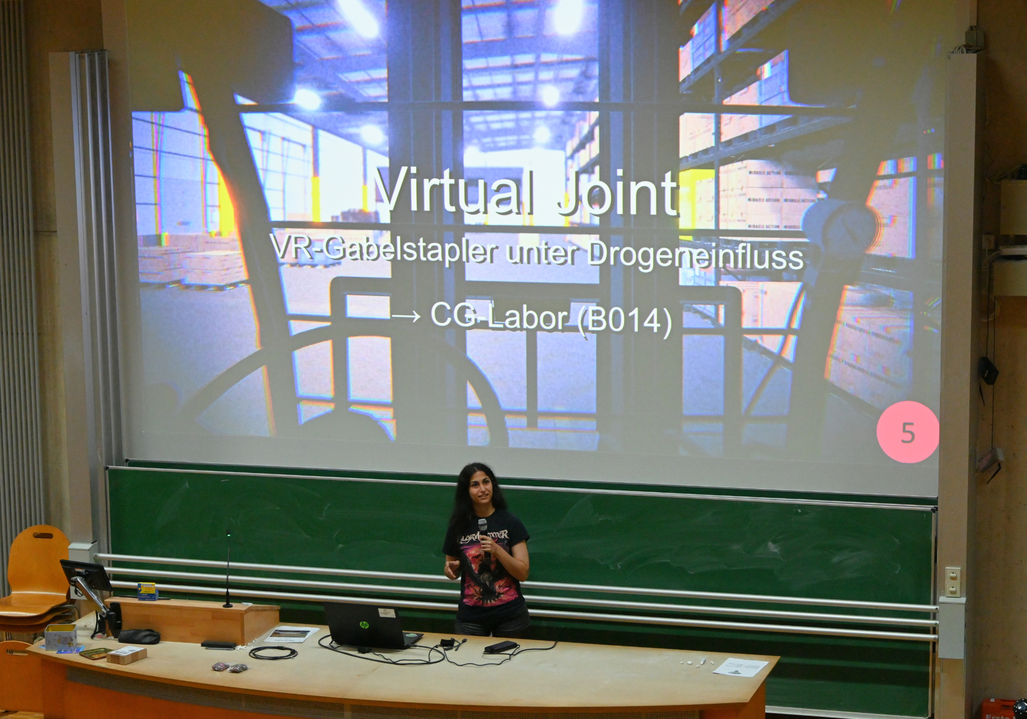 Am CV-Tag hat unser Gastredner Rodja Trappe einen Vortrag über seinen Weg nach dem Studium gehalten und so Einblicke in das Berufsleben von Computervisualisten gegeben.