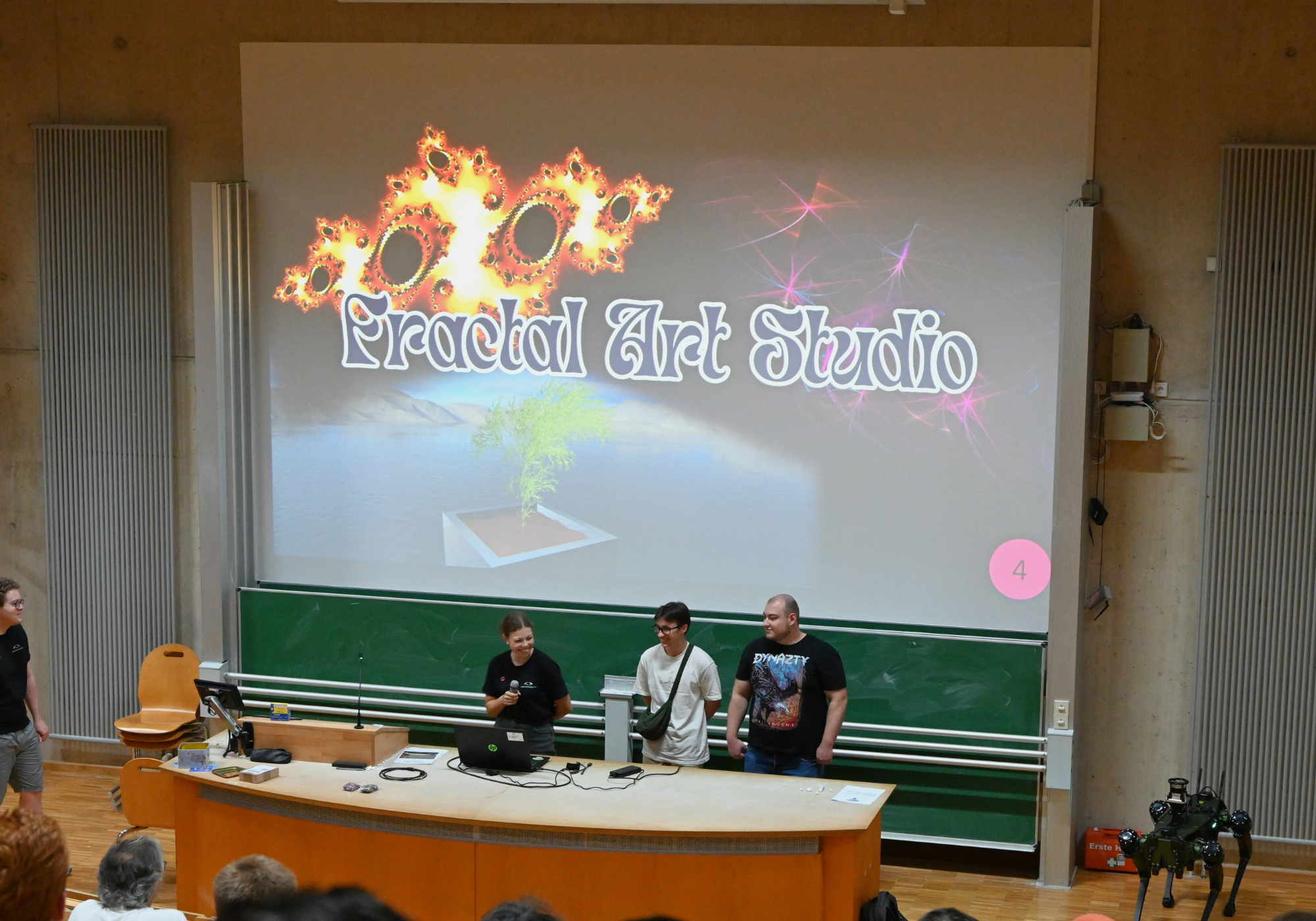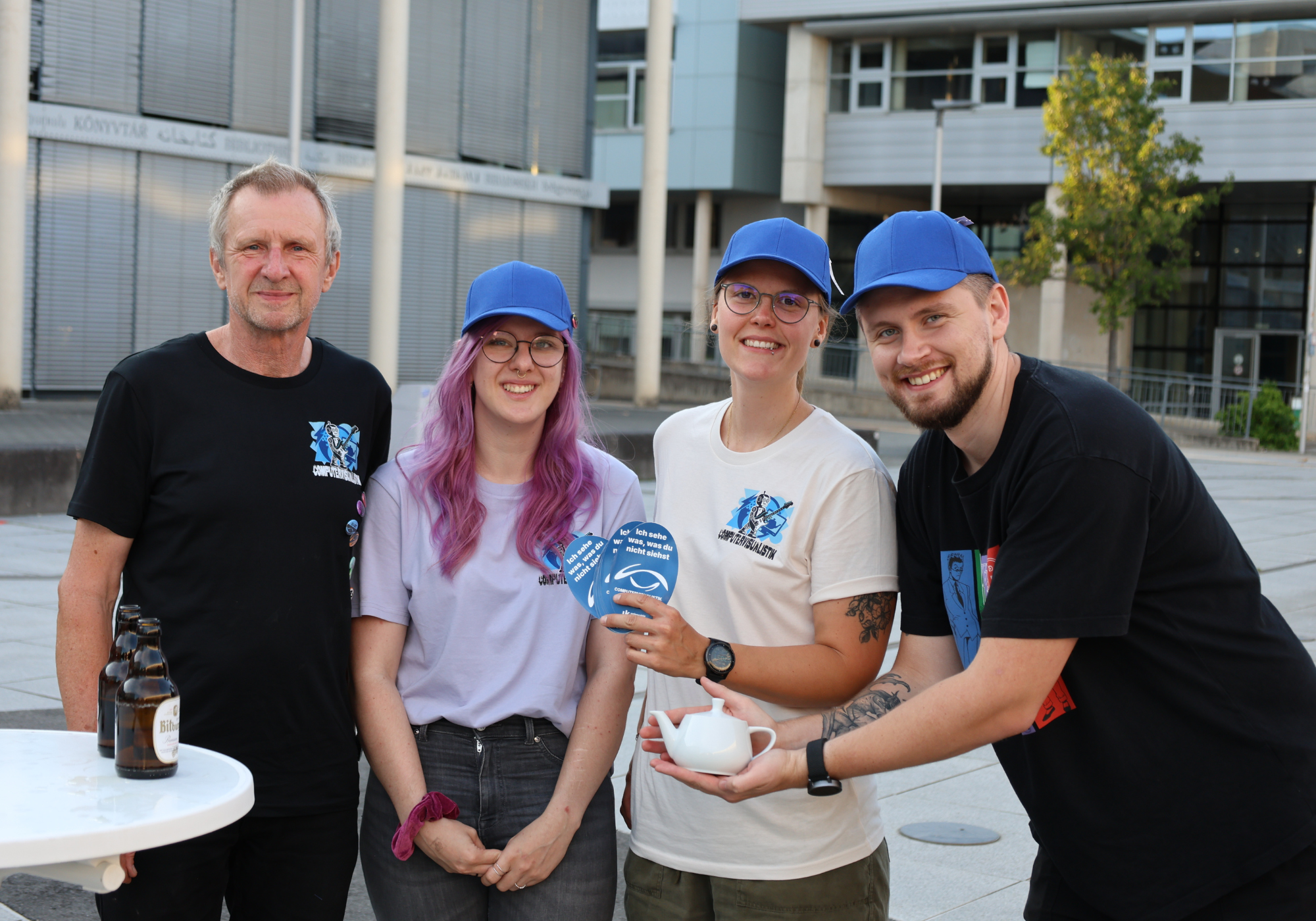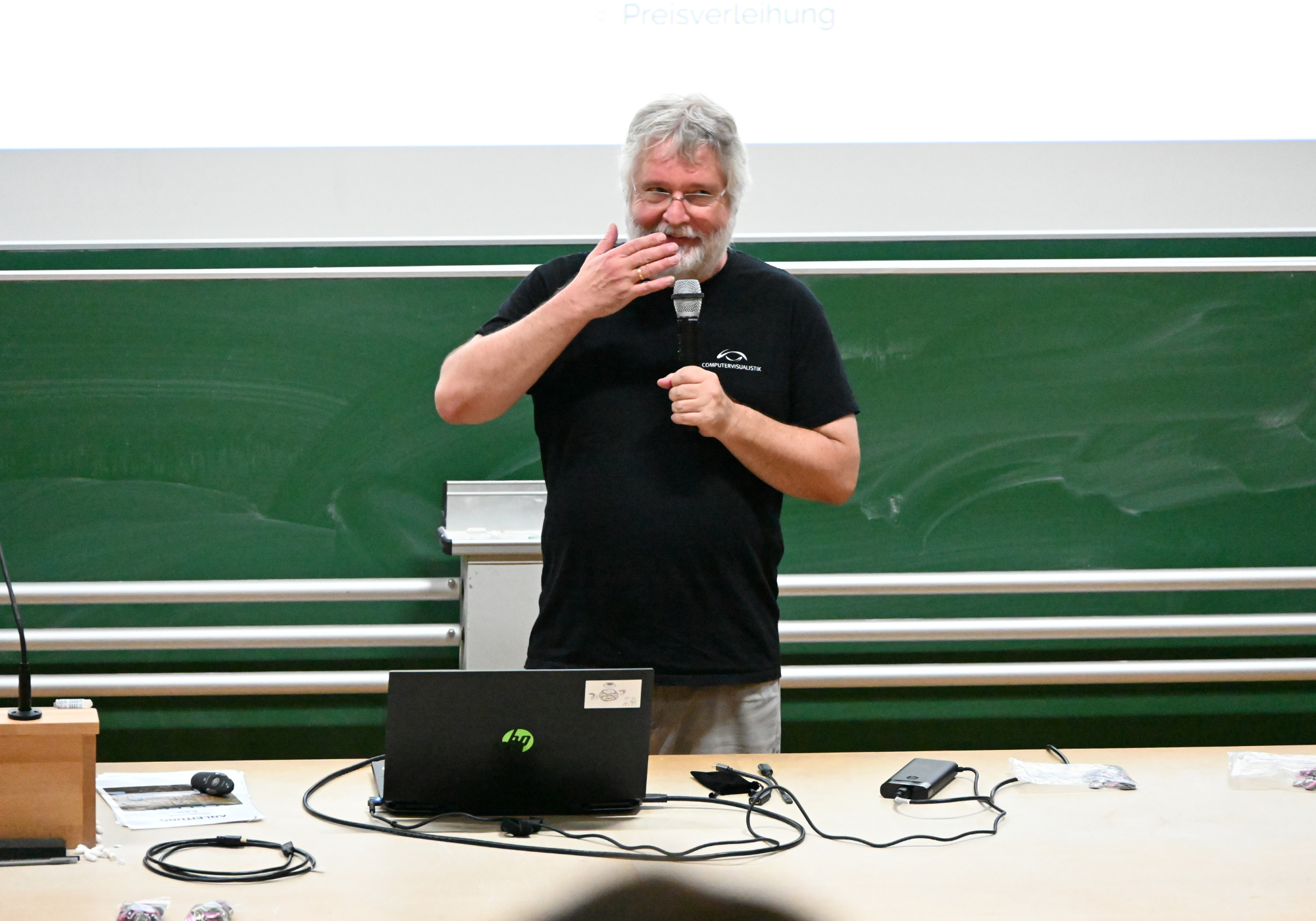 Ein ganz besonderes Symbol für die CV-Community durfte natürlich nicht fehlen: Der legendäre Plüsch-Teapot – ein liebevoller Verweis auf die Utah-Teekanne, das ikonische 3D-Objekt der Computergrafik, wurde ebenfalls verlost! Weitere Highlights: ein Mini-Projektor für Kinoabende, das Spiel „Hitster“ für Musikfans, eine Kiste Bitburger für durstige Glückspilze und das Partyspiel „ChatGPT – Schlag die KI“ für alle, die mal testen wollen, ob sie noch besser sind als die KI, die ihre Arbeit erledigt.