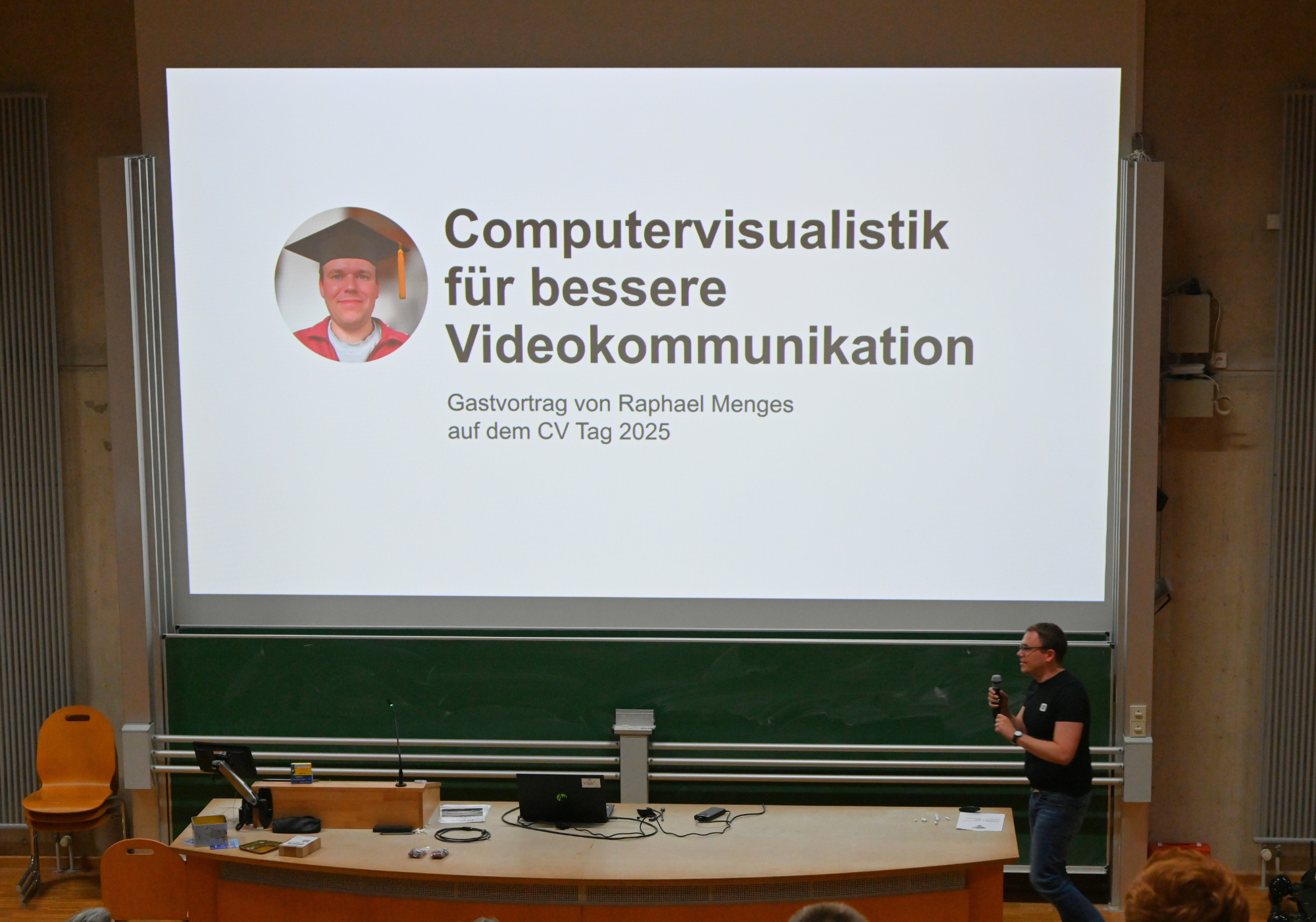 Am CV-Tag hat unser Gastredner Rahael Menges einen Vortrag über seinen Weg nach dem Studium gehalten und so Einblicke in das Berufsleben von Computervisualisten gegeben.
