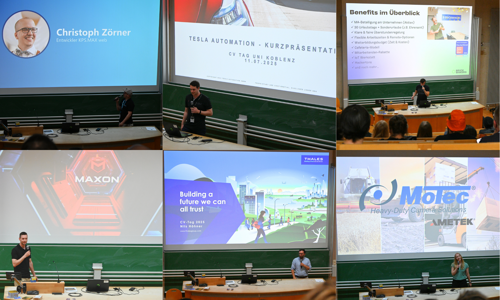 Unsere sechs Partnerfirmen haben am CV-Tag jeweils einen kurzen Vortrag zu den beruflichen Perspektiven für CVler in ihrem Unternehmen gehalten. Während der Ausstellung der Projekte, haben uch die Firmen jeweils einen Stand besetzt und dort die Möglichkeit zum Networkenund Informieren geboten.