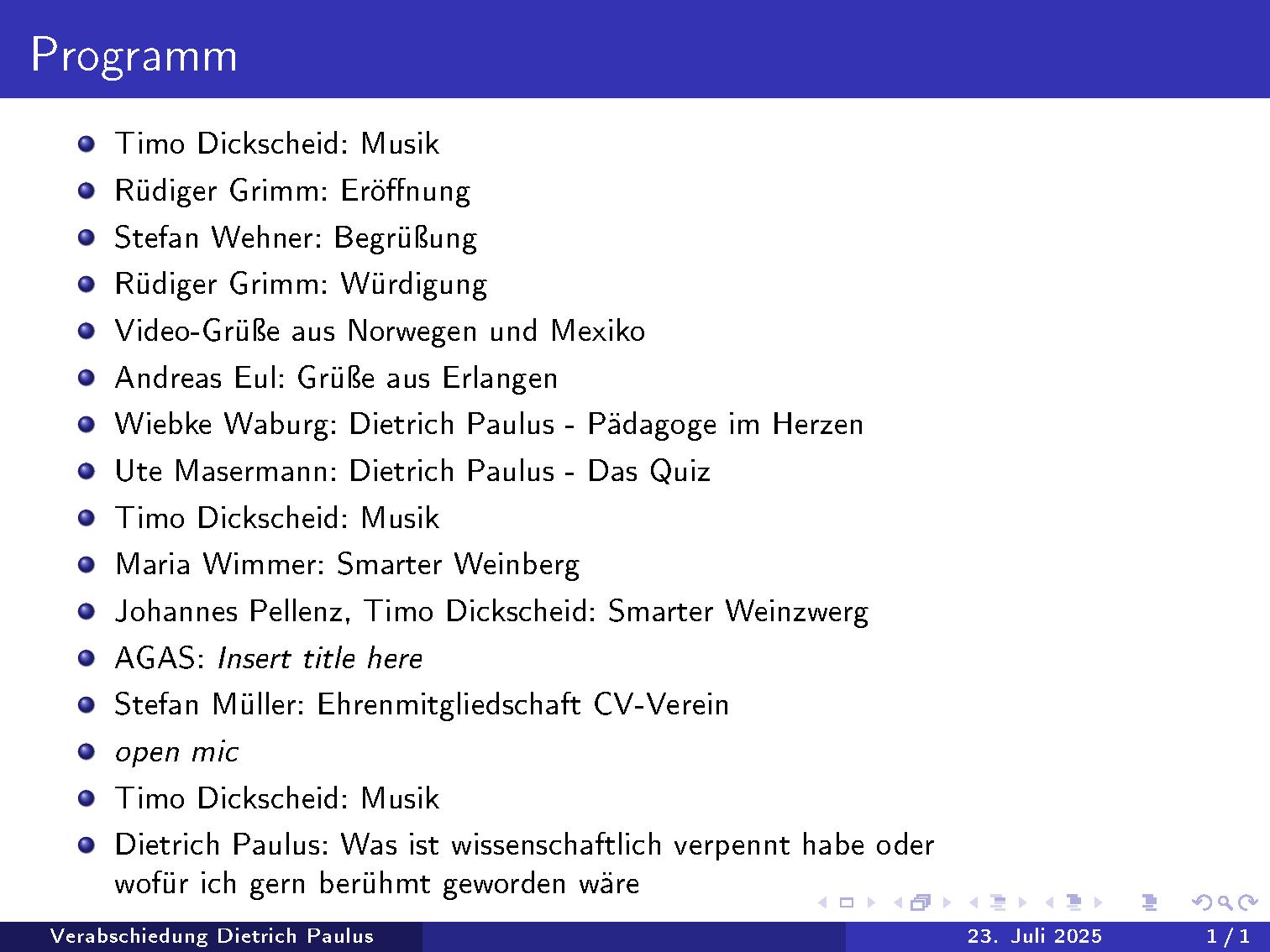 Danke für die schönen Jahre an der Universität Koblenz, danke für die Freundschaften und Mitarbeit, danke für die schönen Beizträge zur Veranstaltung und danke für Eure Begleitung