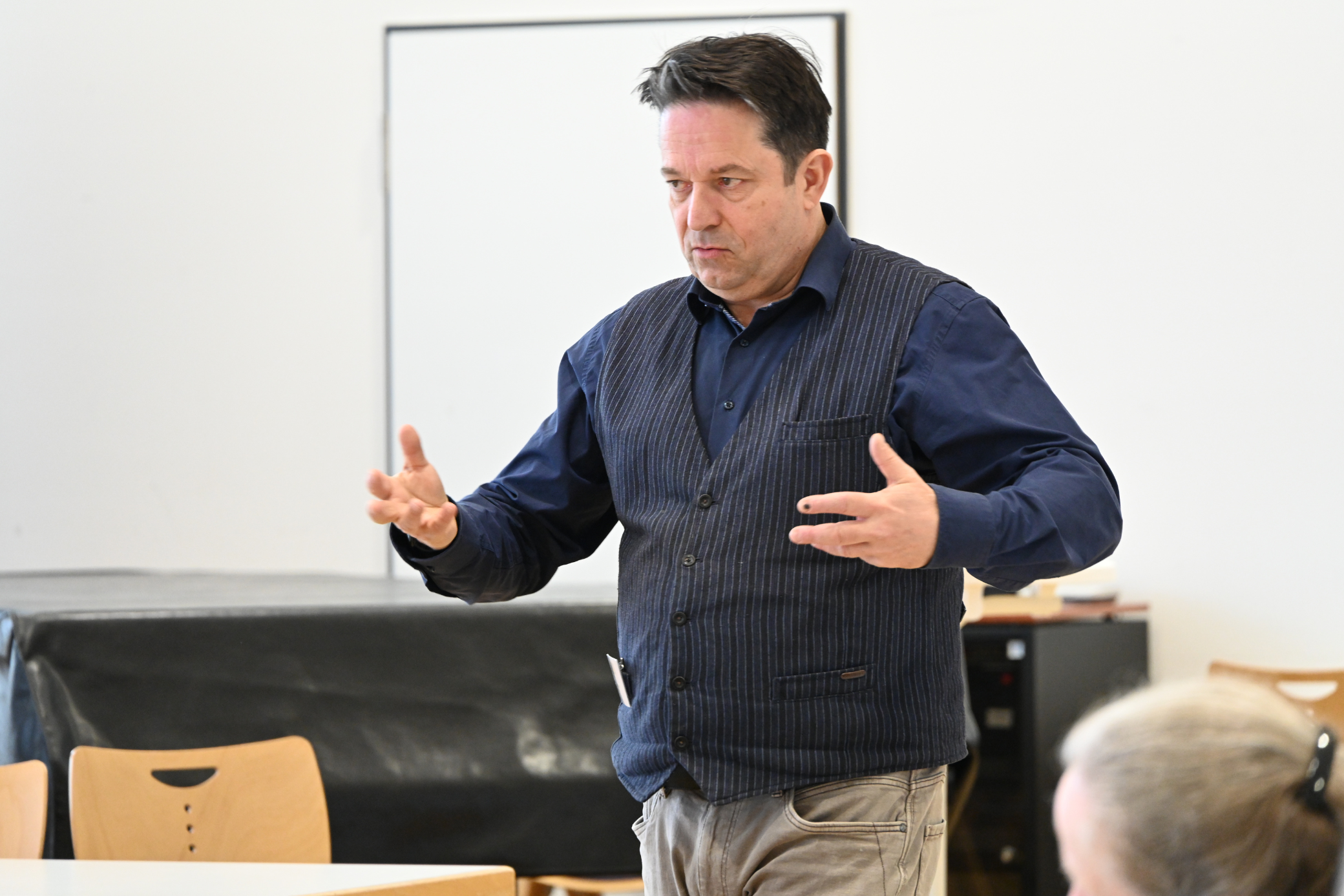 Im Workshop von Frank Gutjahr zum Thema Artikulieren stand die Stimme im Mittelpunkt. Mit kurzen, alltagstauglichen Übungen erfuhren die Teilnehmenden, wie sie ihre Stimme wirksam einsetzen und zugleich gesund erhalten können. Präsenz, Verständlichkeit und Reichweite wurden nicht nur besprochen, sondern unmittelbar spürbar. Kleine Veränderungen zeigten große Wirkung.