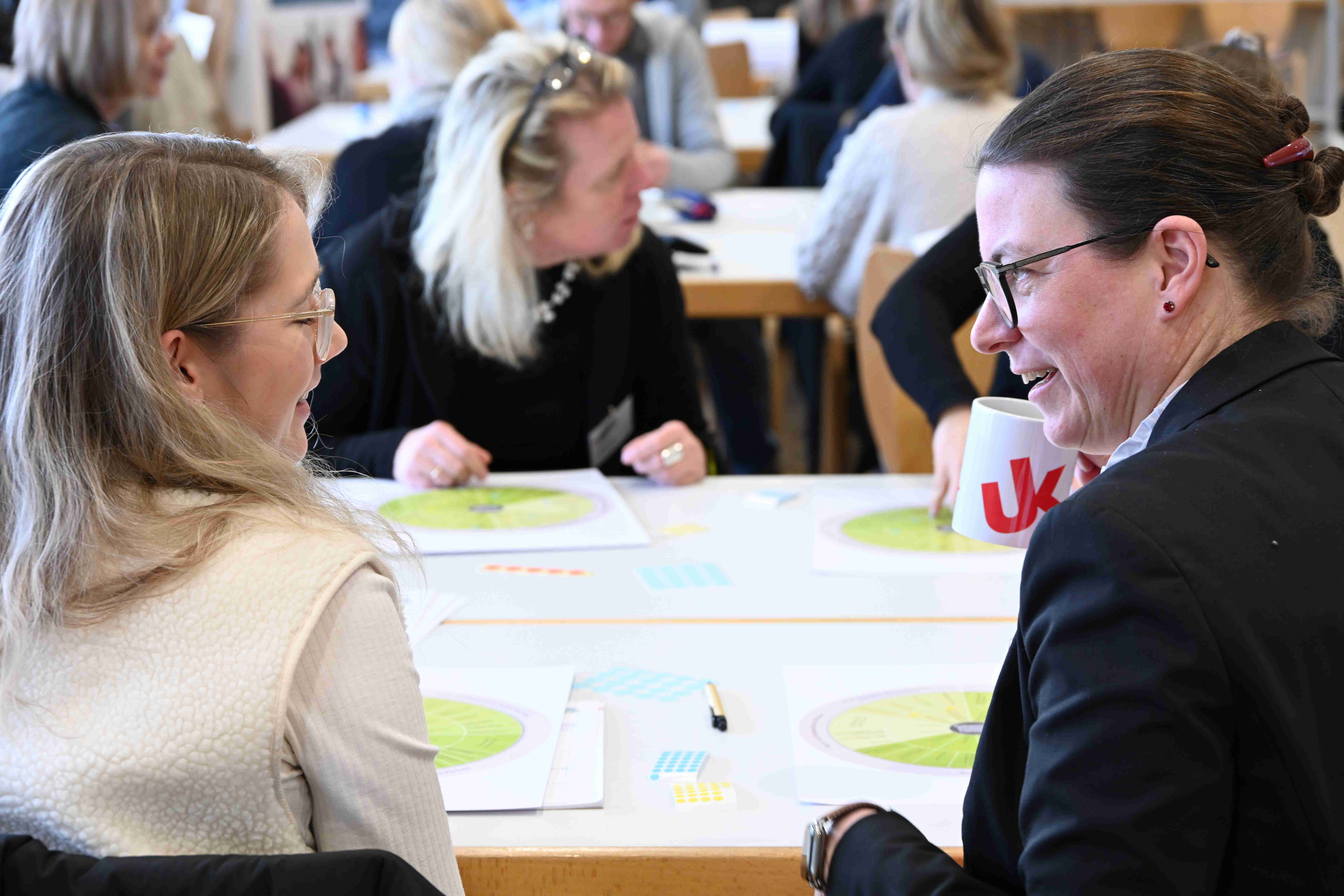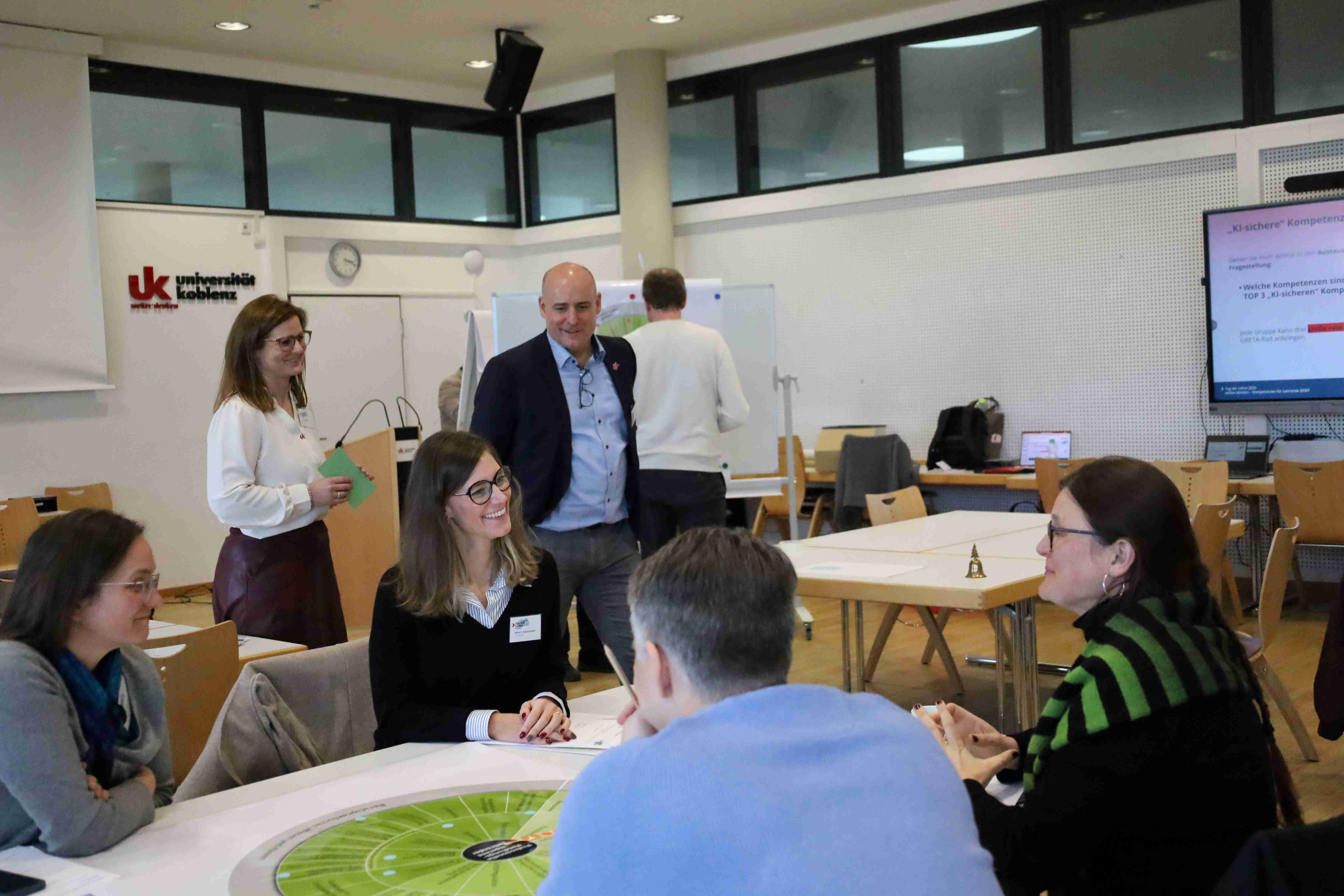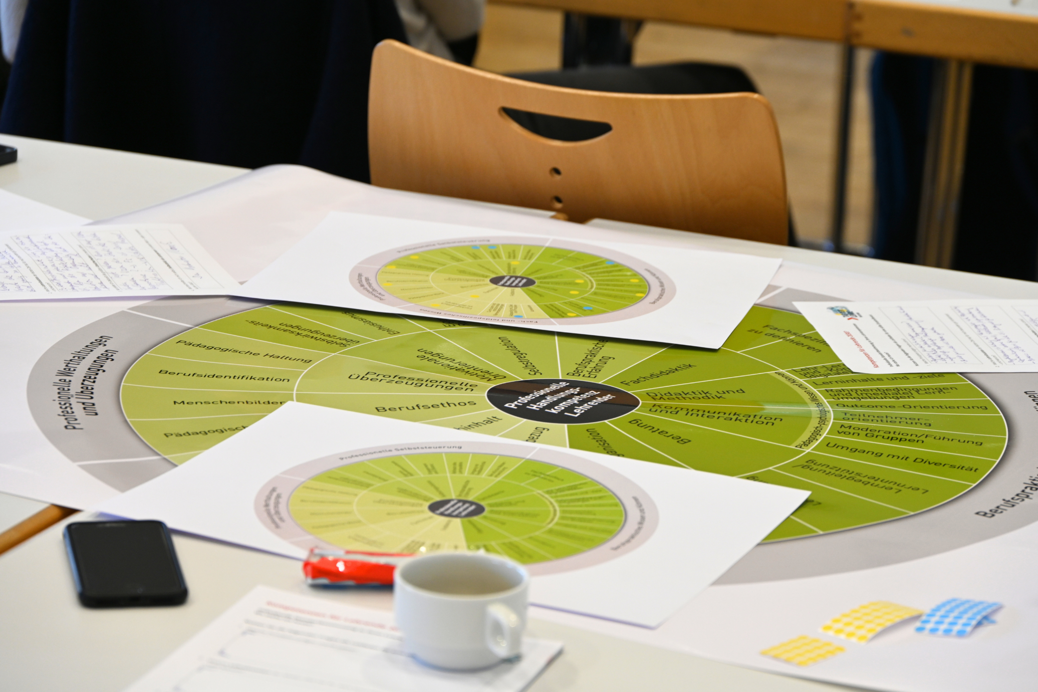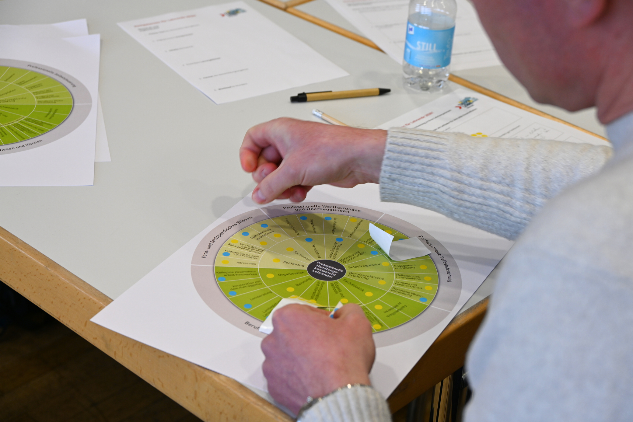Unter den Leitfragen „Wo stehe ich heute? Wo will ich hin?“ begleiteten Dr. Peter Ferdinand und Silke Schranz eine kompakte Standortbestimmung zu Lehrkompetenzen. Kurze Impulse und der Austausch in Kleingruppen halfen, Stärken zu benennen, Entwicklungsfelder zu klären und konkrete Ziele bis 2030 zu formulieren. Zum Einsatz kamen ein Reflexionsbogen mit offenen Leitfragen sowie das GRETA-Kompetenzrad des Deutschen Instituts für Erwachsenenbildung (DIE) als strukturierendes Reflexionsinstrument.