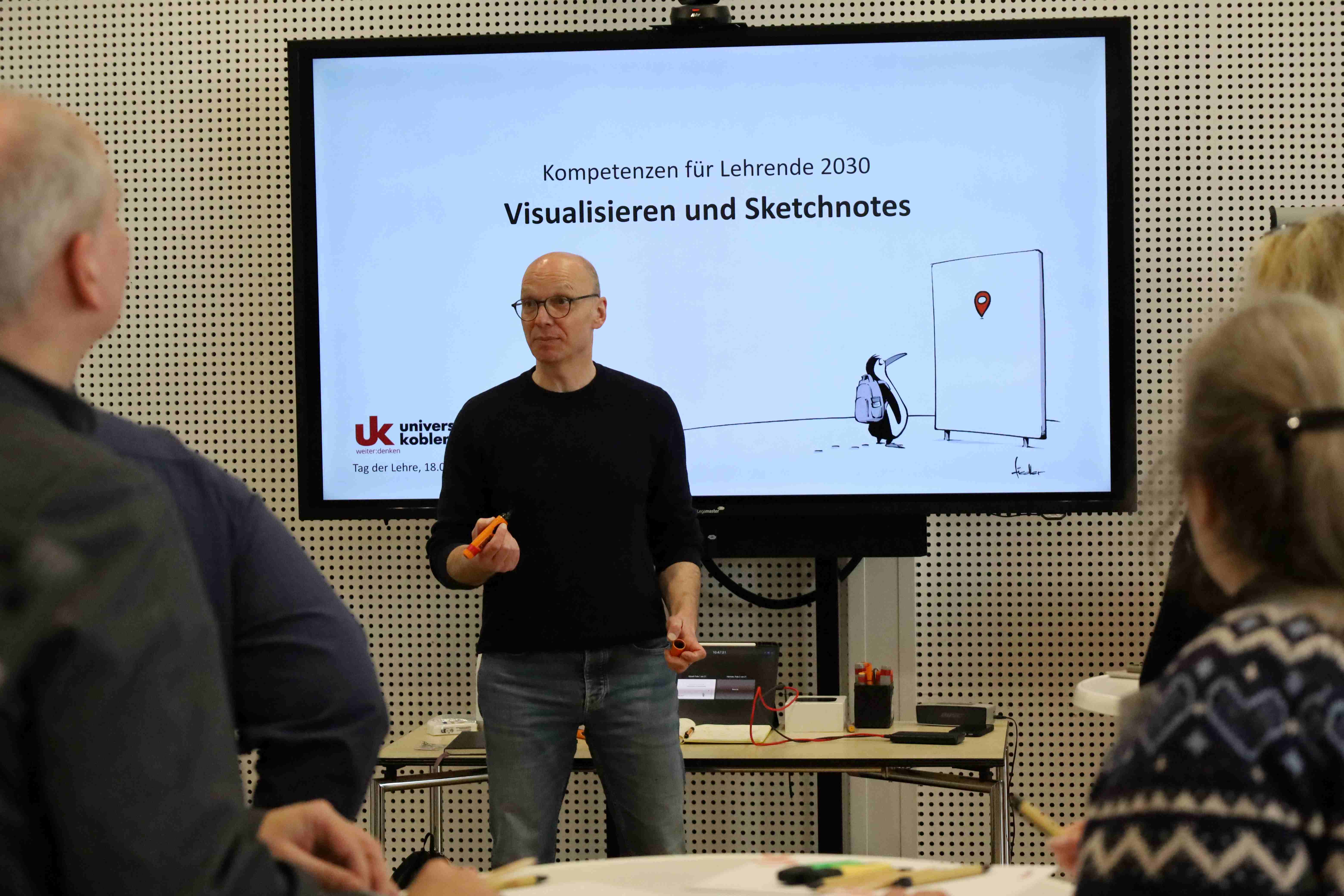 Den Auftakt machte Tom Fiedler mit seinem Workshop zum Thema Visualisieren. Hier wurde deutlich wie kraftvoll einfache handschriftliche Sketchnotes und reduzierte Zeichenelemente sein können. Ohne Anspruch auf Zeichenkunst, dafür mit viel Neugier und Experimentierfreude, entstanden visuelle Anker, die Inhalte klarer strukturieren, Zusammenhänge sichtbar machen und das Erinnern erleichtern sollen.