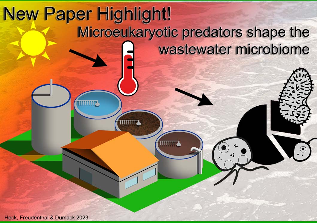 Wir zeigen, dass Protisten die Zusammensetzung prokaryotischer Gemeinschaften im Abwasser maßgeblich prägen und damit lange beobachtete, aber bislang schlecht verstandene, saisonale Schwankungen erklären. Unsere Ergebnisse verdeutlichen, dass das Abwassermikrobiom nur dann vollständig verstanden werden kann, wenn es ganzheitlich untersucht wird. Der vollständige Artikel ist in Water Research erschienen.