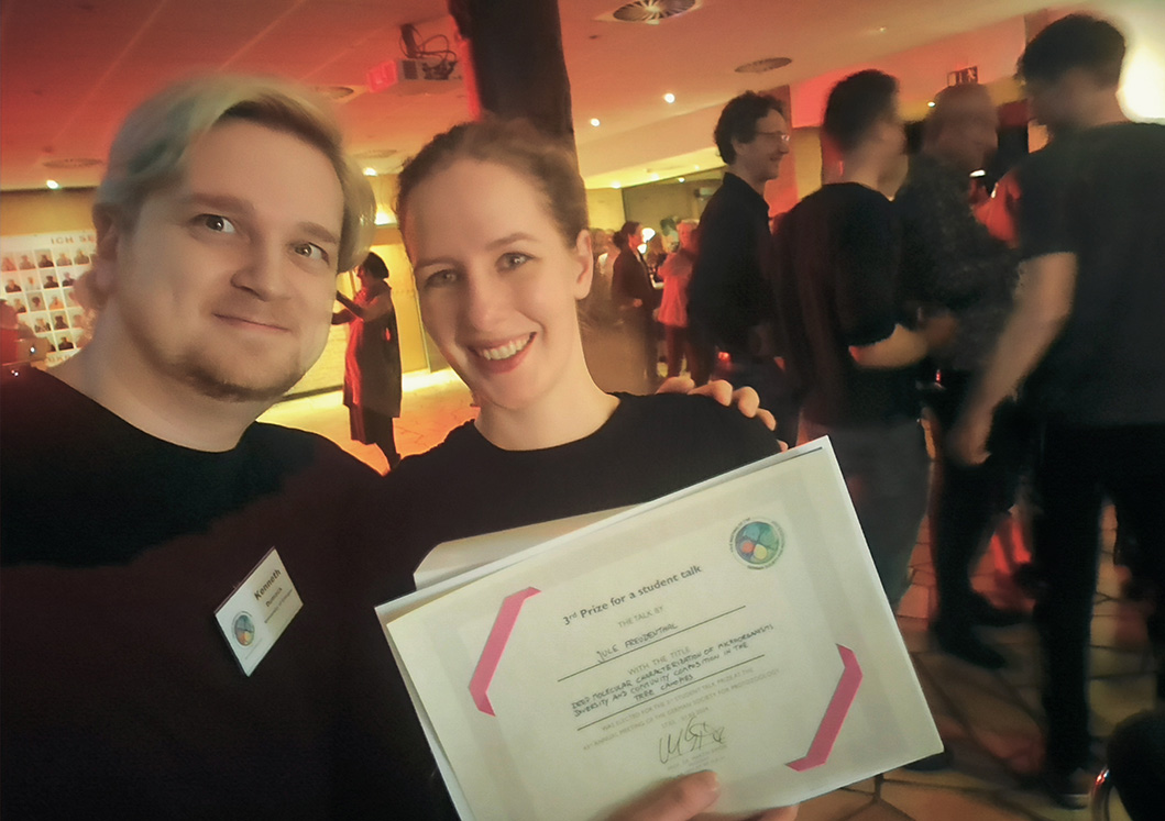 Jule Freudenthal, eine unserer Doktorandinnen, erhielt den dritten Preis für den besten Vortrag auf der Jahrestagung der Deutschen Gesellschaft für Protozoologie (DGP) 2024 in Haltern am See. Herzlichen Glückwunsch, Jule!