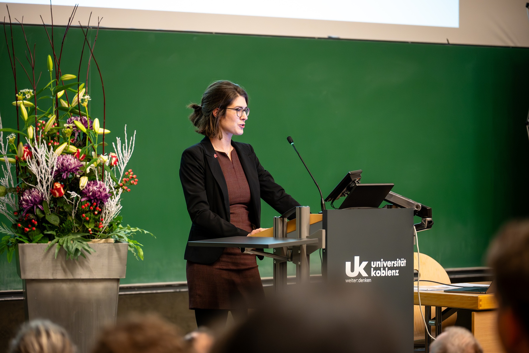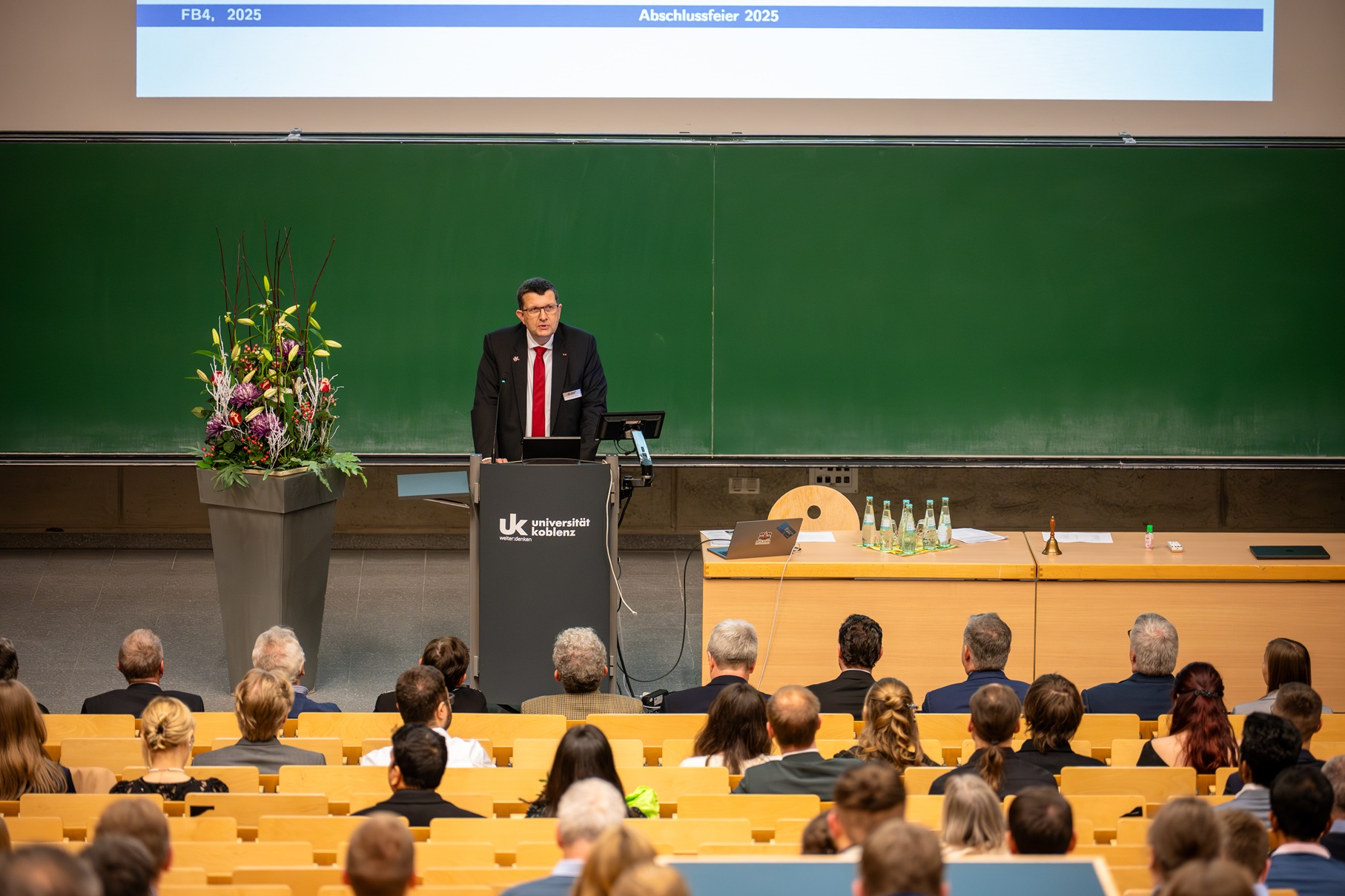Rund 300 Gäste kamen zur Feier im Audimax – darunter Familienangehörige, Uni-Mitglieder, emeritierte Professor*innen sowie Ehrengäste wie die Koblenzer Bürgermeisterin Ulrike Mohrs, der Hochschulratsvorsitzende Prof. Dr. Thomas Hanschke und Jürgen Süs, Präsident des Polizeipräsidiums Koblenz, das seit diesem Jahr mit dem Fachbereich Informatik zusammenarbeitet.