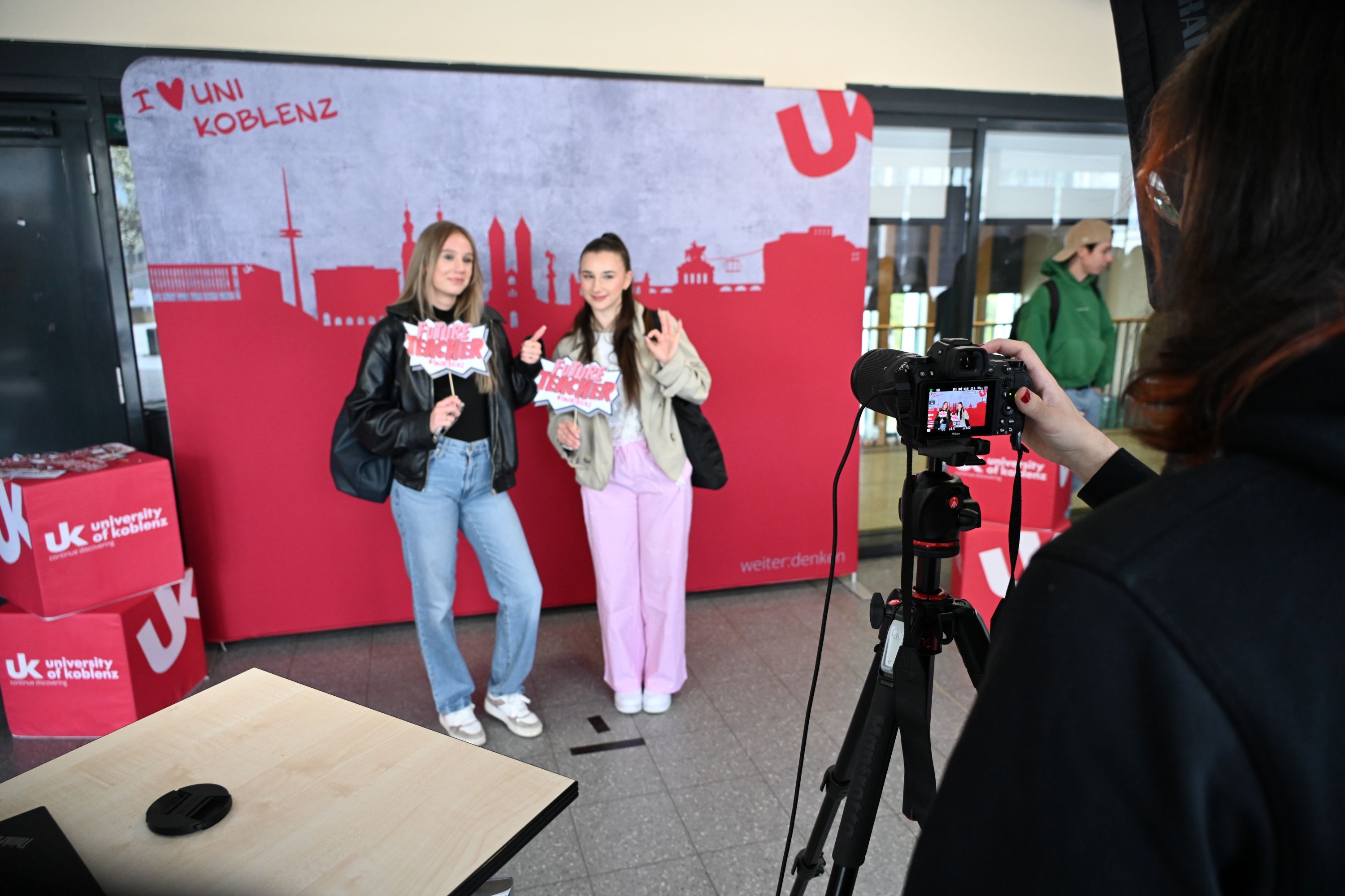 Zahlreiche Erstsemester nutzen das Angebot, ein Erinnerungsfoto von sich schießen zu lassen. Bild: Universität Koblenz / Christoph Asche