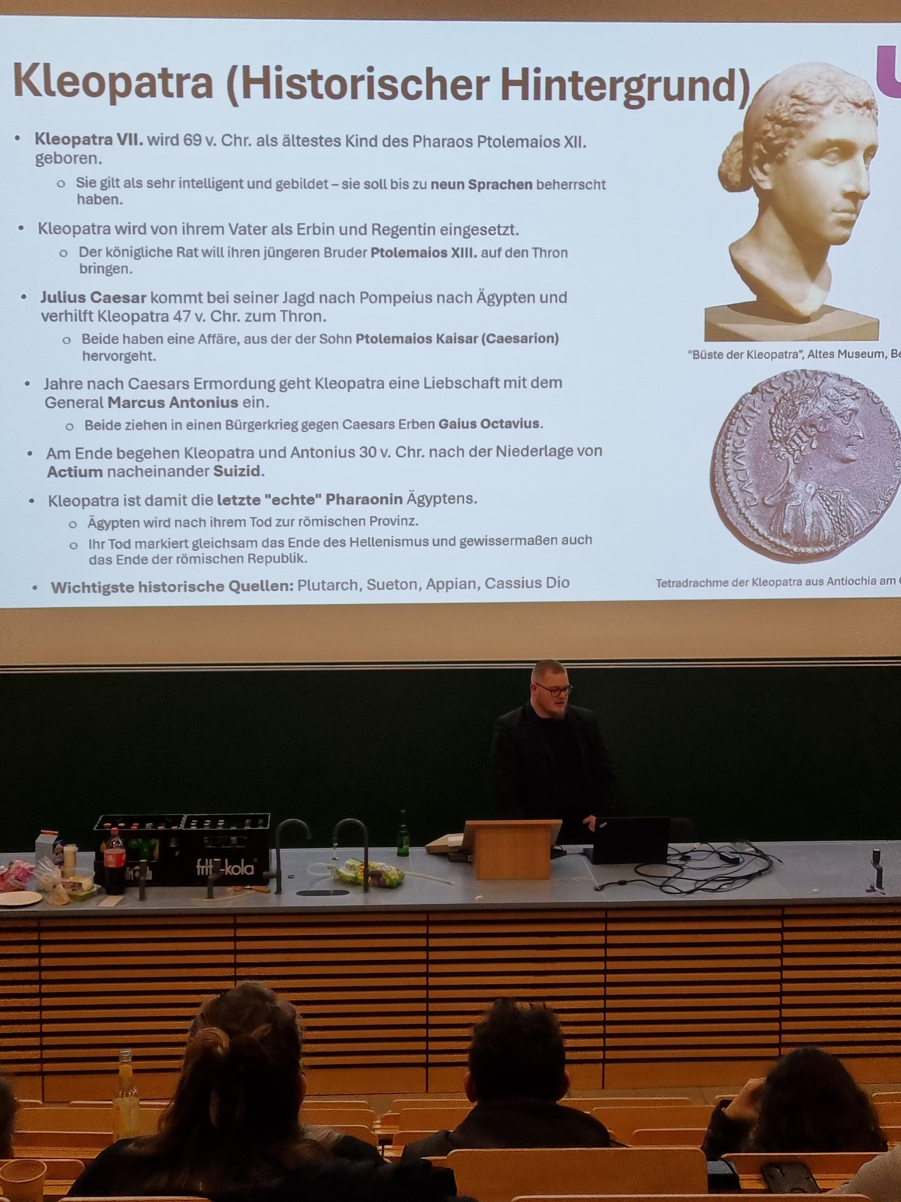 Nach dem erfolgreichen Start in die Welt der Antike lud die AG Antike erneut dazu ein, das Monumentalwerk „Cleopatra“ gemeinsam zu Ende zu führen. Auch am zweiten Abend füllte sich der Saal, als die Geschichte um eine der berühmtesten Frau der Geschichte ihren dramatischen Lauf nahm.