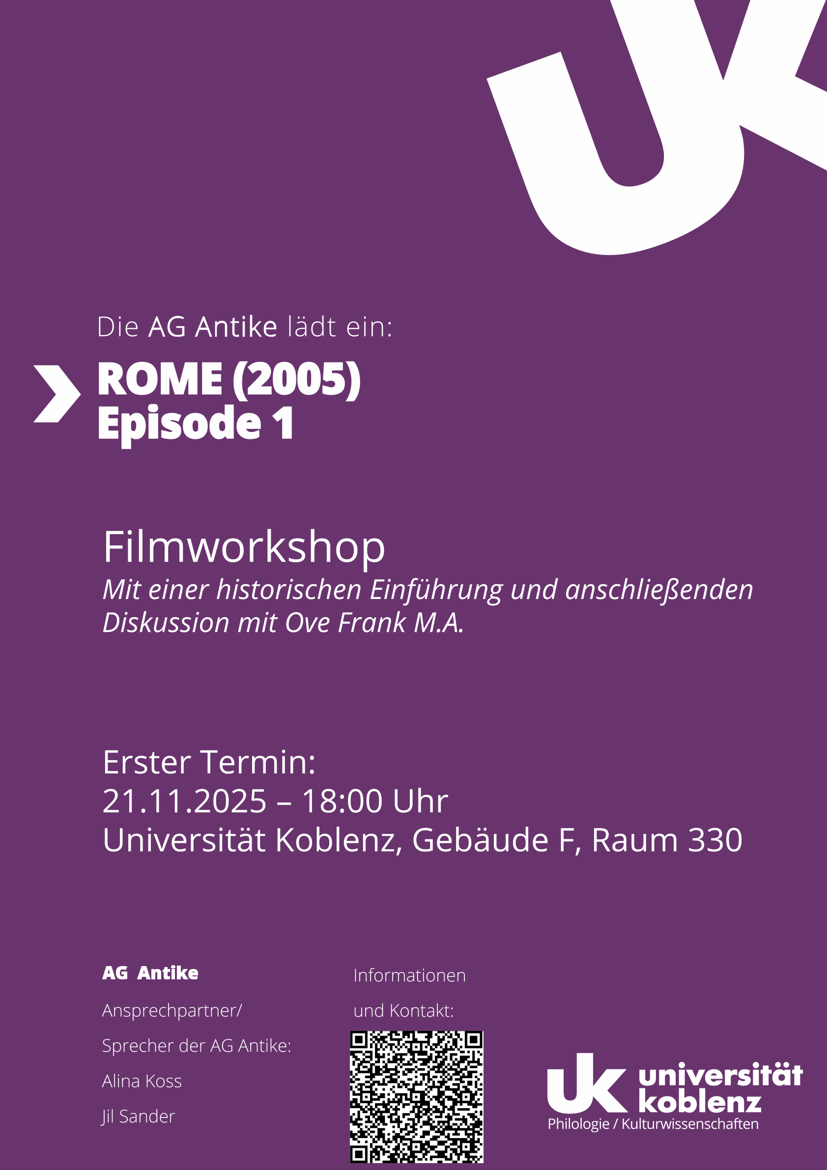 Wir treffen uns dieses Semester laufend zu Filmworkshops zu HBO's Rome: