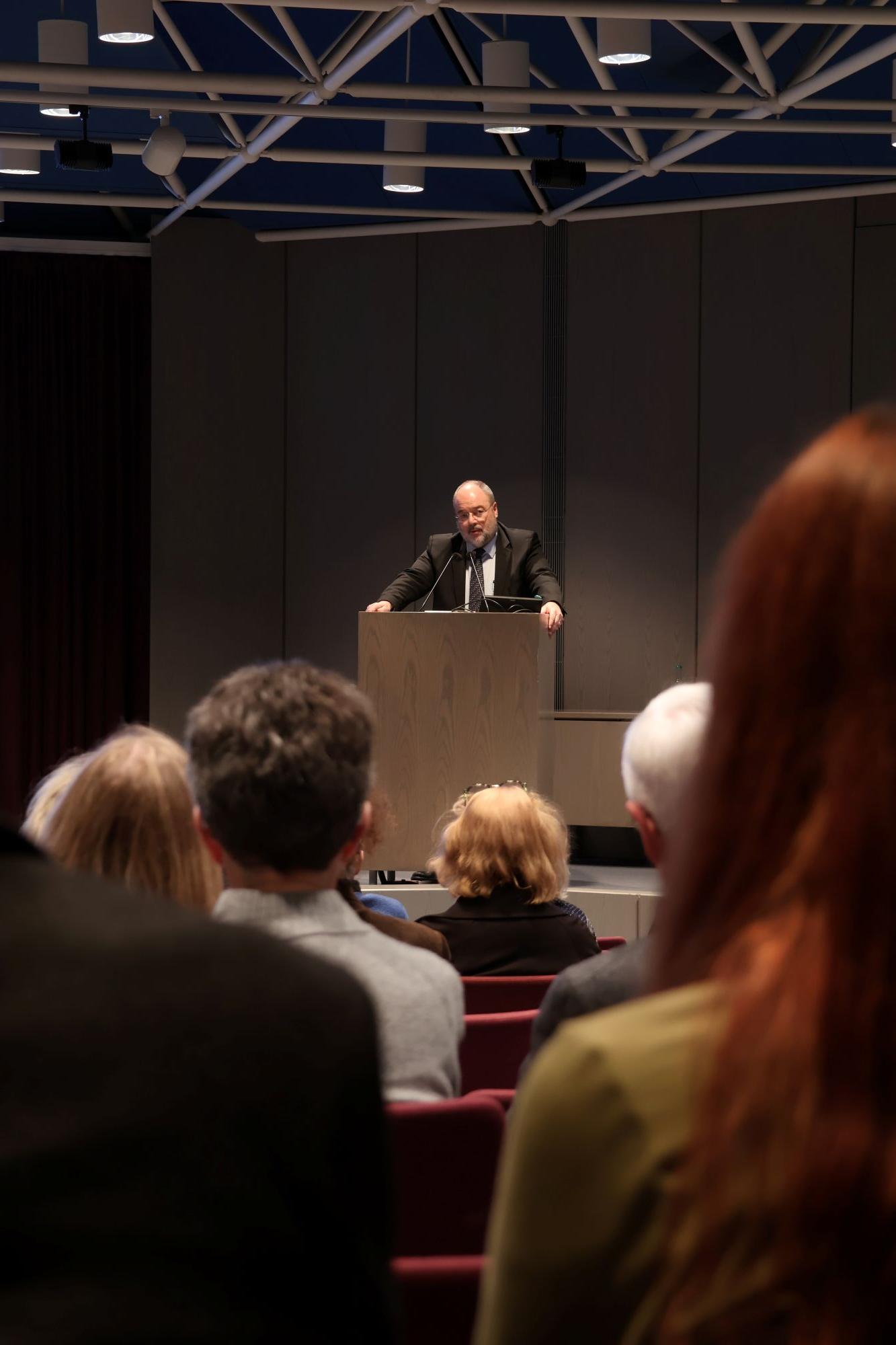 Prof. Dr. Michael Hollmann, Präsident des Bundesarchivs, begrüßt die Gäste zur Eröffnung der Ausstellung '#ChallengingDemocracy - Von Helmut Schmidt bis heute' am 15. Januar in Koblenz.