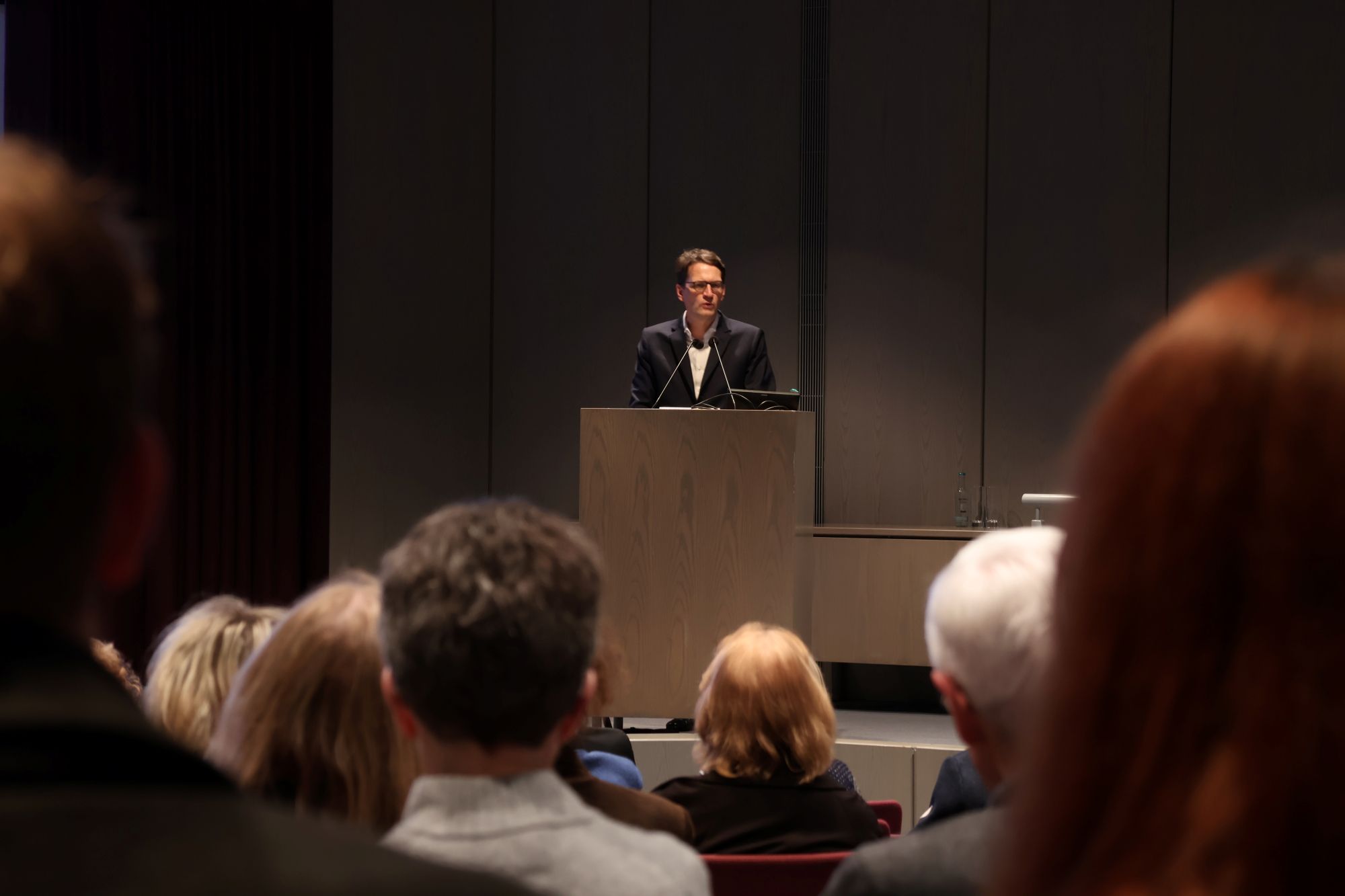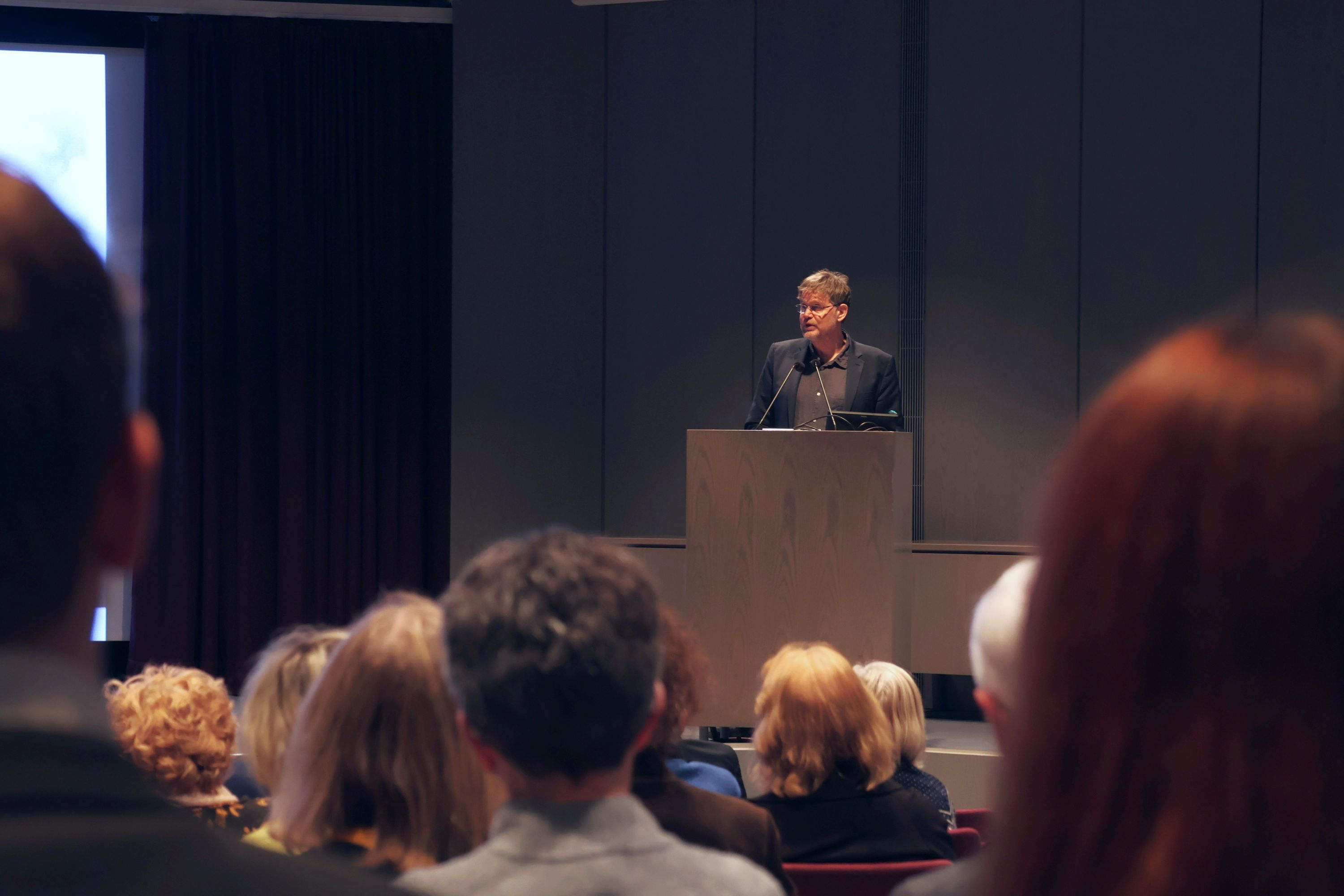Dr. Magnus Koch, Programmbereichsleiter Ausstellungen und Geschichte der BKHS, führt die Überlegungen Woykes weiter und stellt die Ausstellung vor, die er zusammen mit seinem Hamburger Team kuratiert hat.