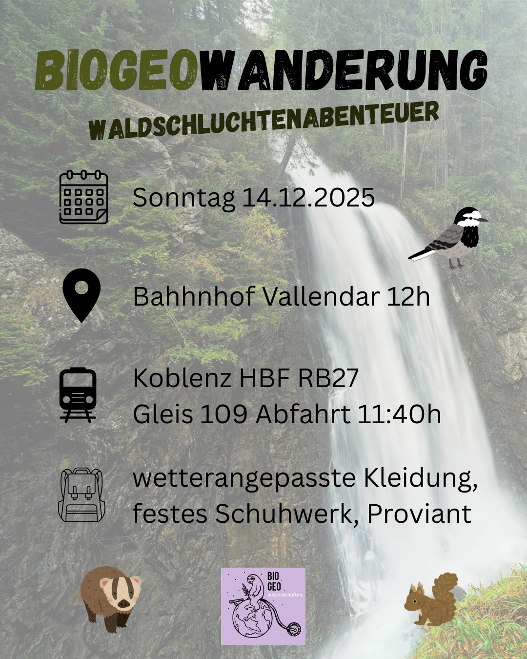 Hallo, Servus und Ahoi!! Hier findet ihr alles Wichtige was ihr zur schnellen Orientierung braucht und natürlich auch wer wir überhaupt sind. Habt ihr trotzdem noch Fragen oder braucht Hilfe? Schreibt uns doch gerne eine Mail, schaut in den BioGeo-Newsletter oder sprecht uns an wenn ihr uns auf dem Campus erspäht <3