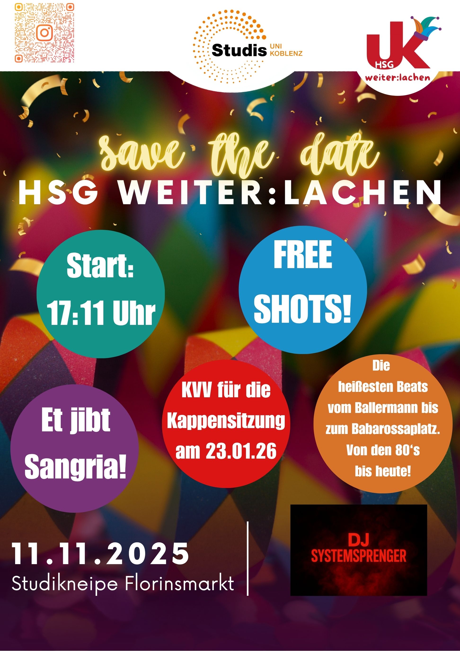 Unser Highlight des Jahres ist unsere Kappensitzung im Hörsaal. Gemeinsam mit Tanzgruppen, Rednern und ganz viel guter Laune möchten wir das Leben am Campus etwas erheitern und das Studentenleben genießen.
