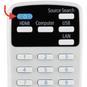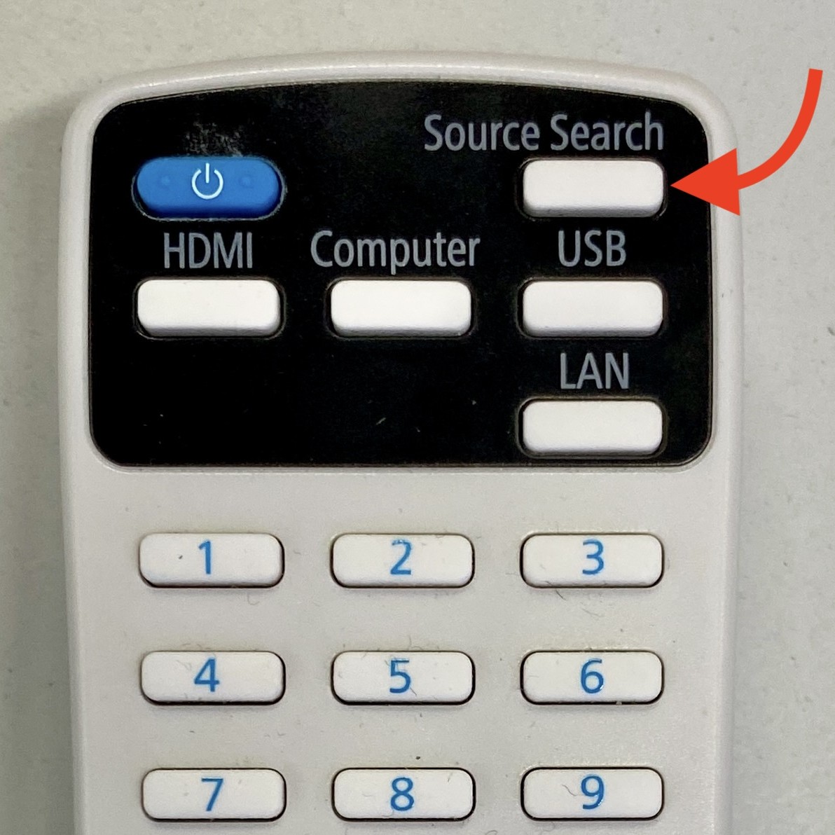 Wenn der Beamer noch kein Bild anzeigt, dann müssen Sie an der Fernbedienung "Source Search" drücken, damit der Beamer die Quelle findet.