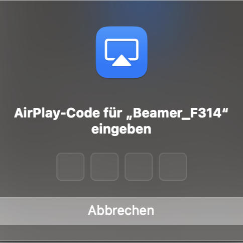 2.2: Ihnen wird der Code auf der Leinweind angezeigt, welches Sie in Ihr Apple Gerät eingeben müssen, um sich zu verbinden: