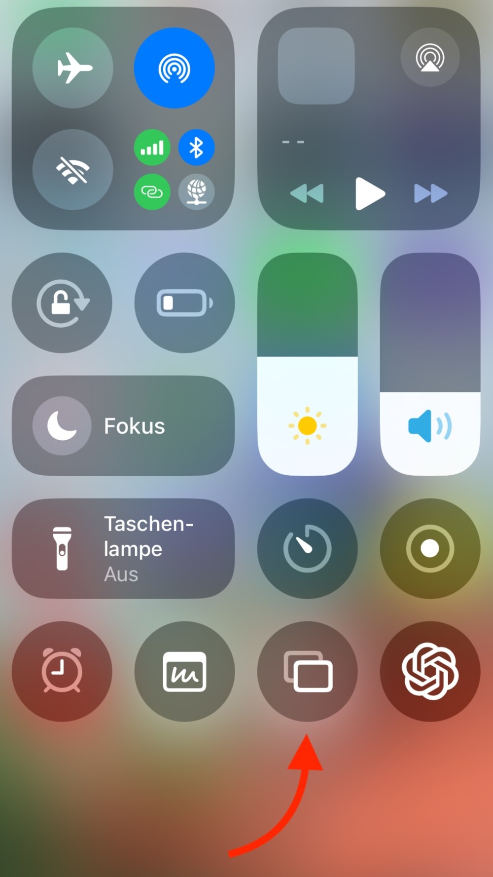 2.1: Am iPhone/iPad: swipen Sie Ihr Homebildschrim von oben rechts, nach unten.