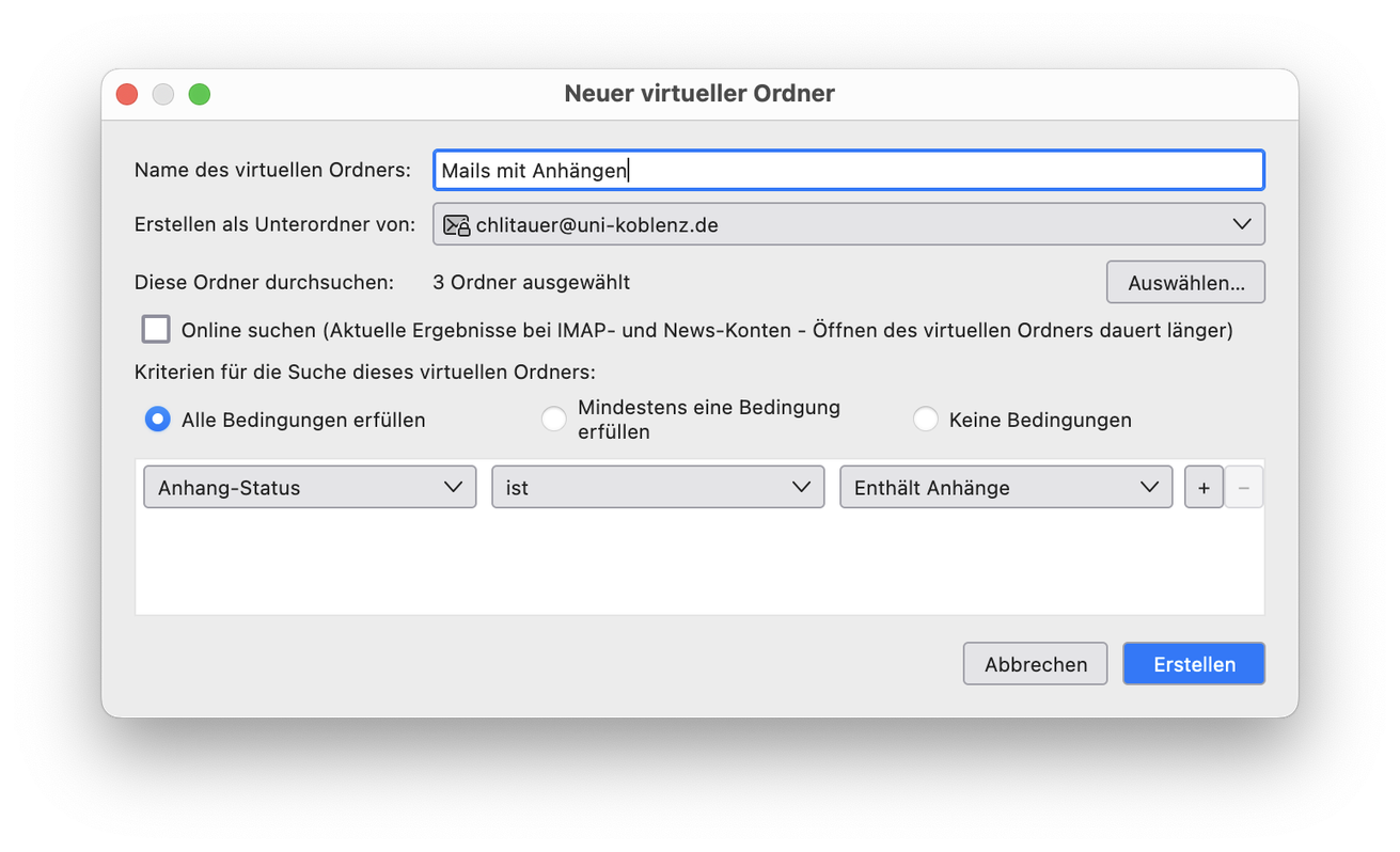 Thunderbird: Virtuelle Ordner